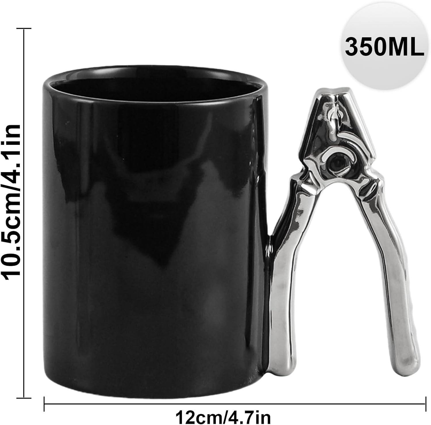 Novelty Pliers Coffee Mug, Creative Tool Ceramic Cup, or DIY Lovers & Handymen, Unique Builder-Style Cup for Home Office Gifts for Men, Boyfriend, Dad, Craftsmen 350ml (Silver-Pliers)