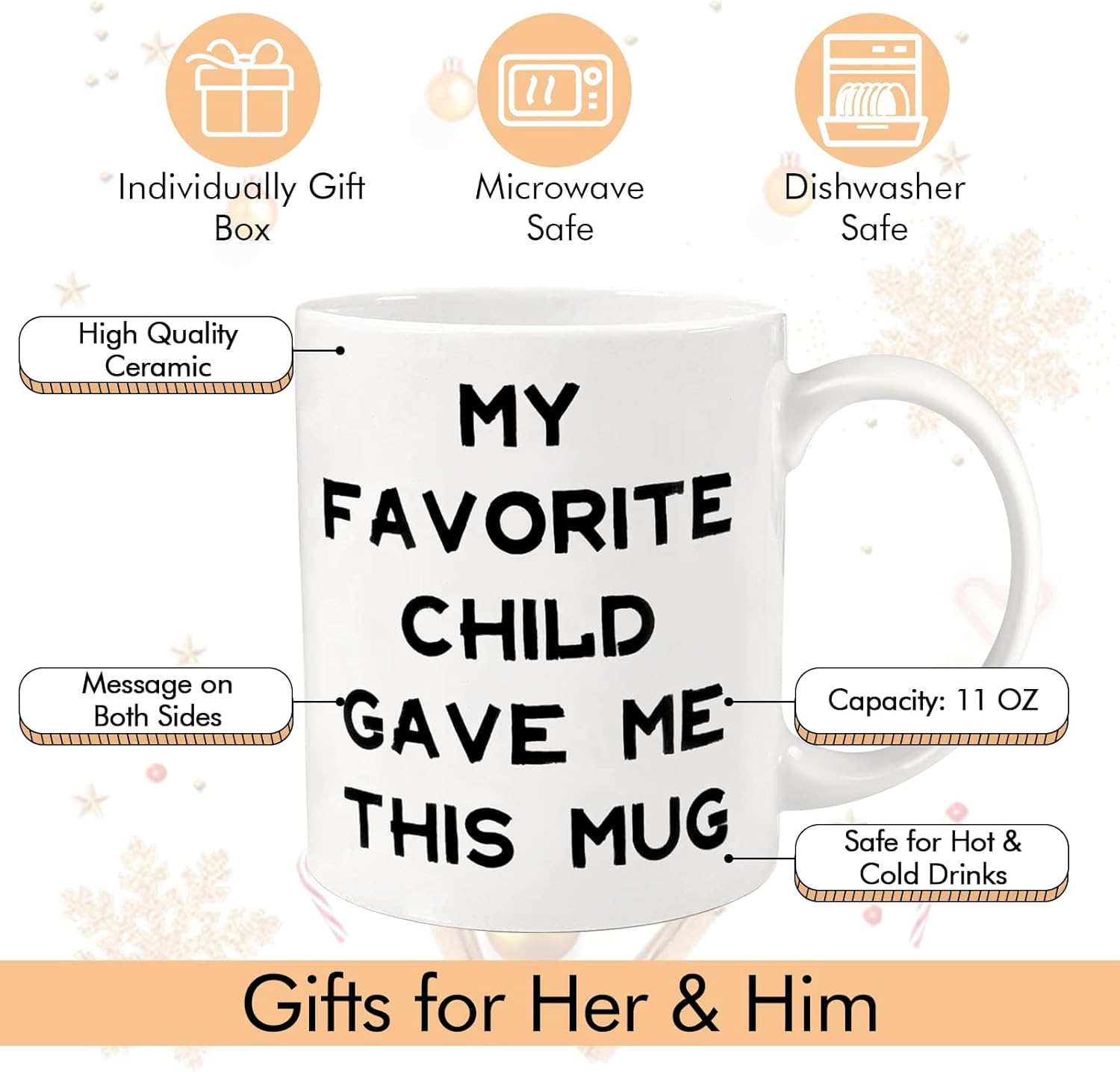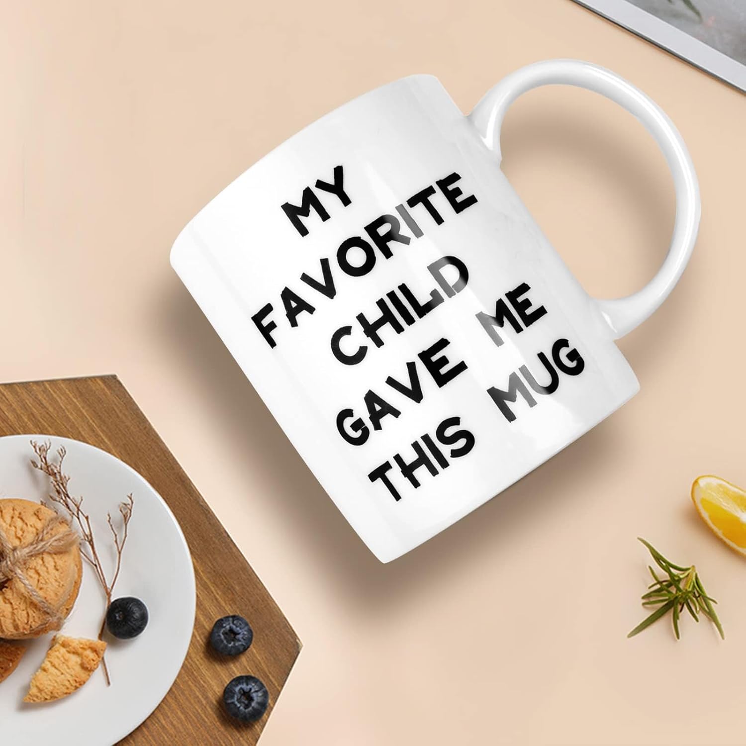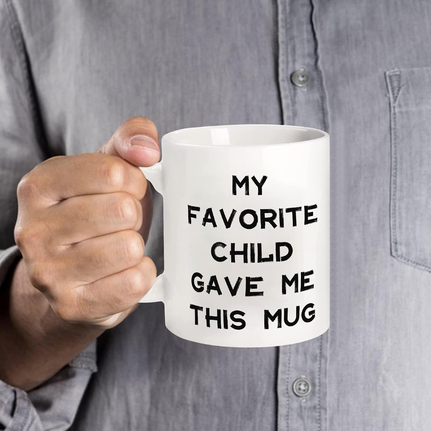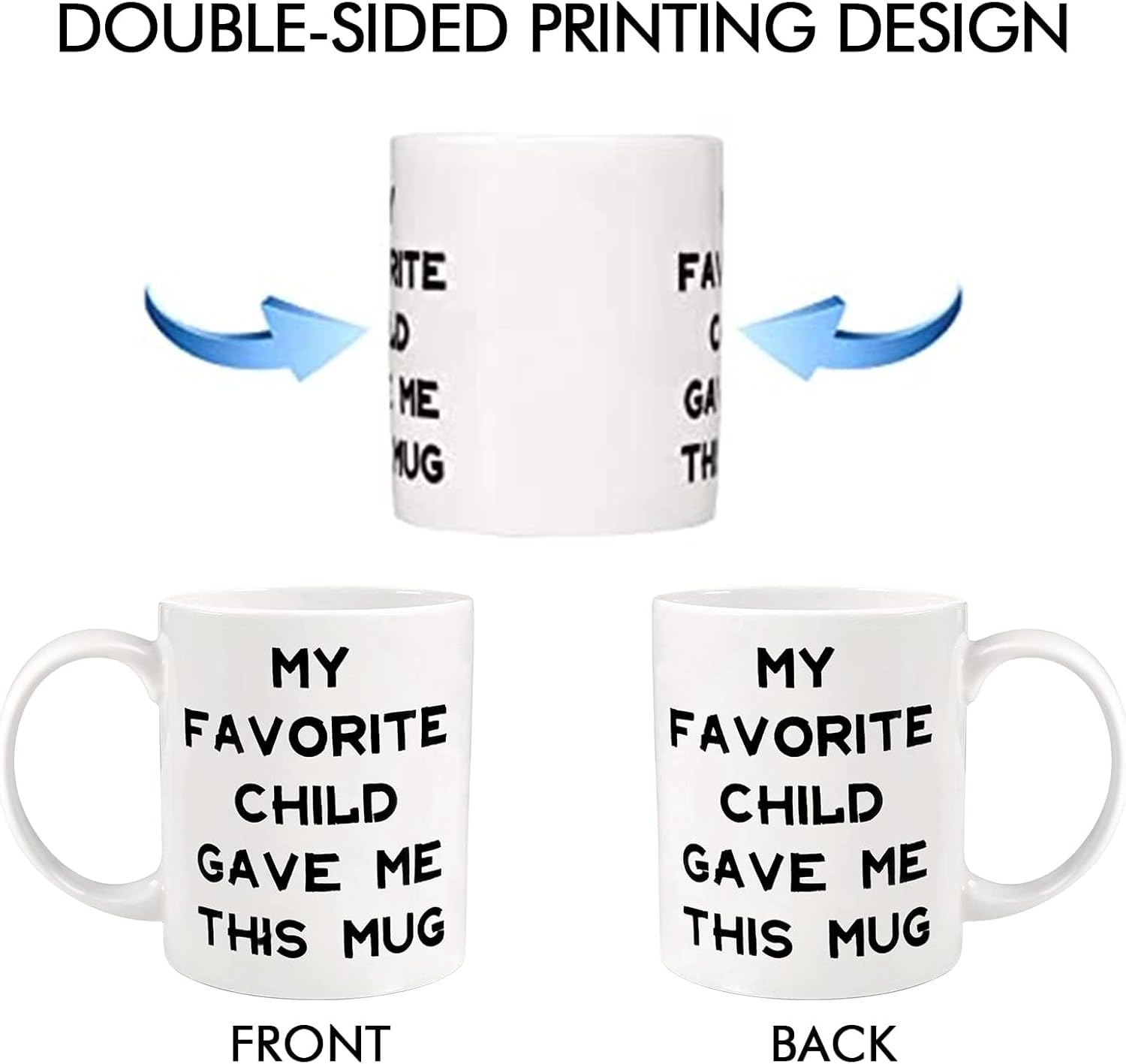 ★Mothers Day Gifts for Mum—If you are looking for Mum Dad Mothers Day gifts, this good quality fun mug is sure to be your good choice. The coffee cup is writing: My Favourite Child Gave Me This Mug, and it will bring back nice memories on every time use. Perfect gifts for mum dad on Christmas,Mothers day,Fathers day,birthday,anniversary.