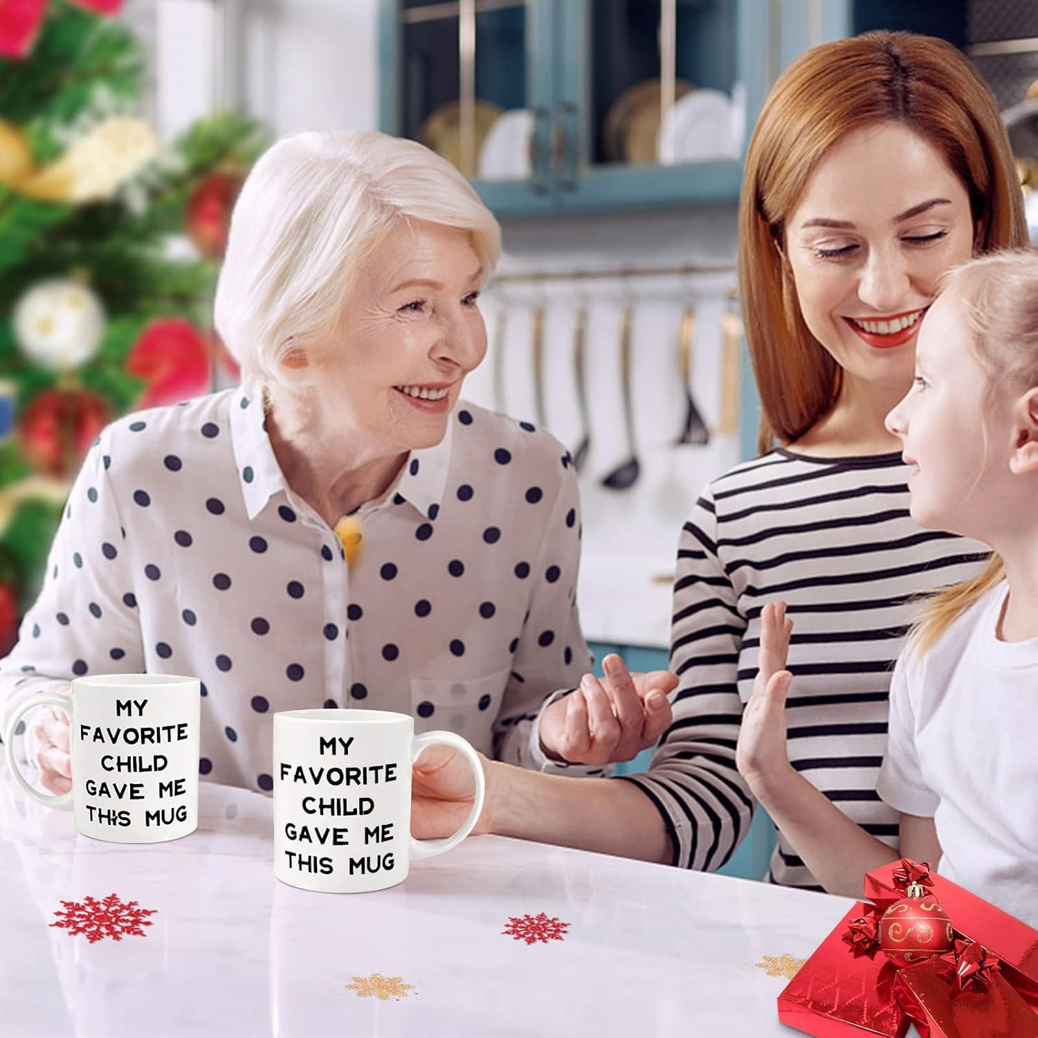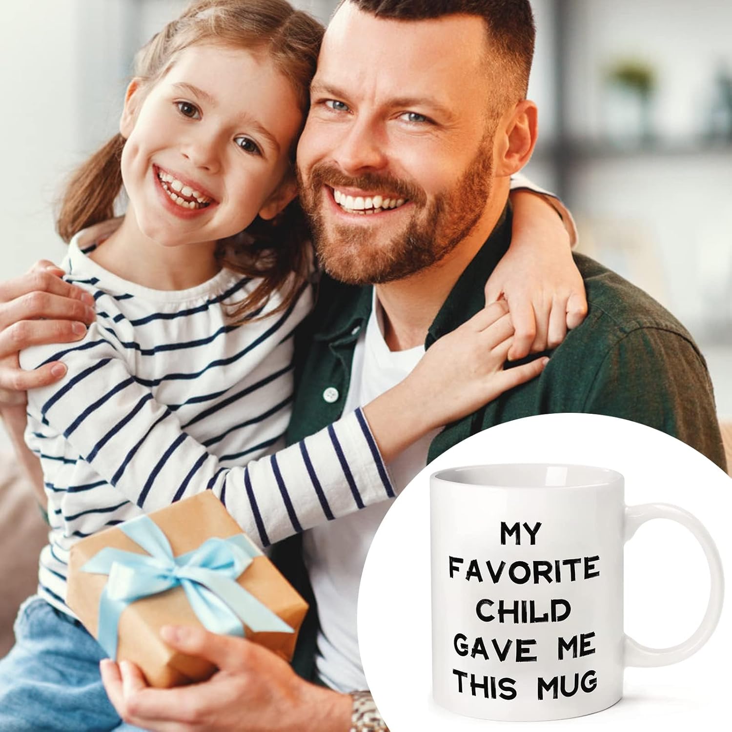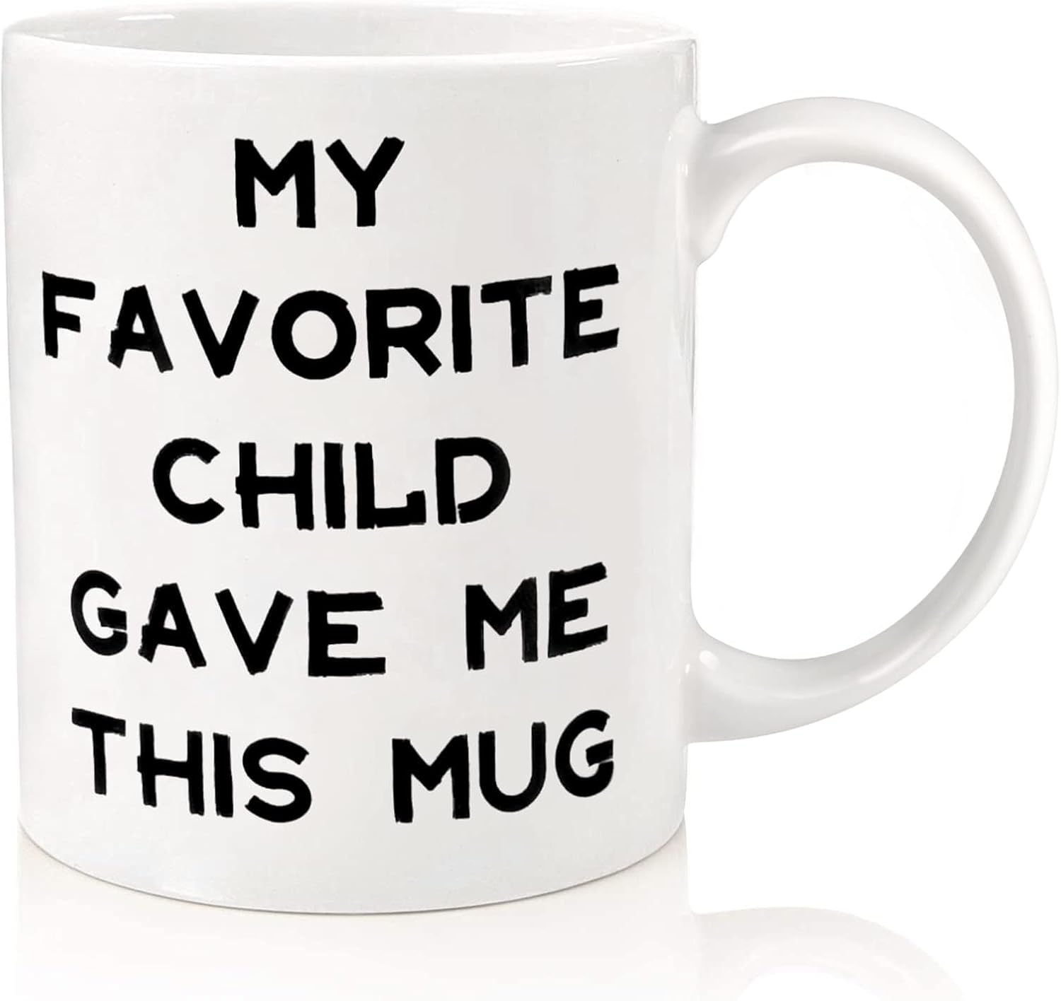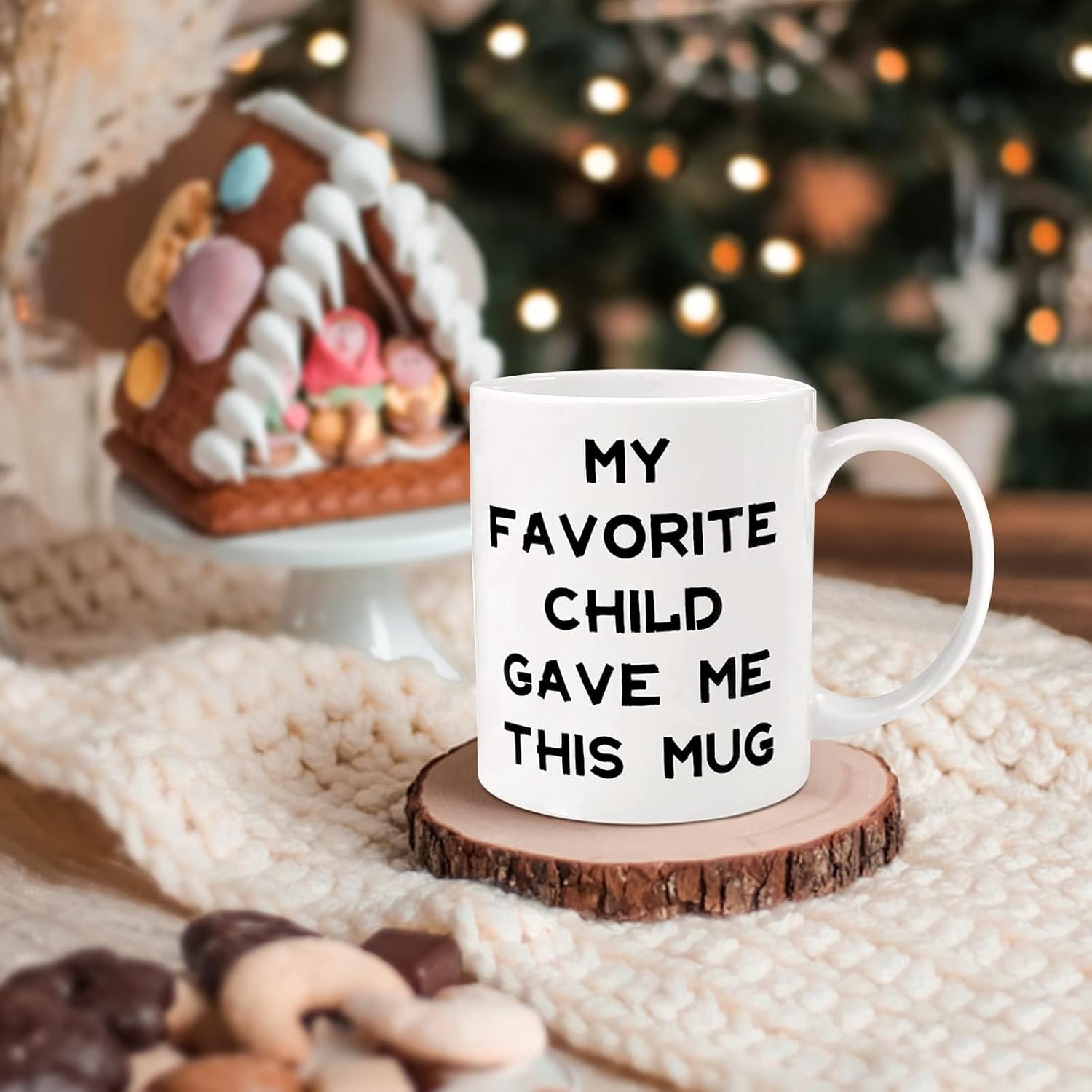 ★Mothers Day Gifts for Mum—If you are looking for Mum Dad Mothers Day gifts, this good quality fun mug is sure to be your good choice. The coffee cup is writing: My Favourite Child Gave Me This Mug, and it will bring back nice memories on every time use. Perfect gifts for mum dad on Christmas,Mothers day,Fathers day,birthday,anniversary.