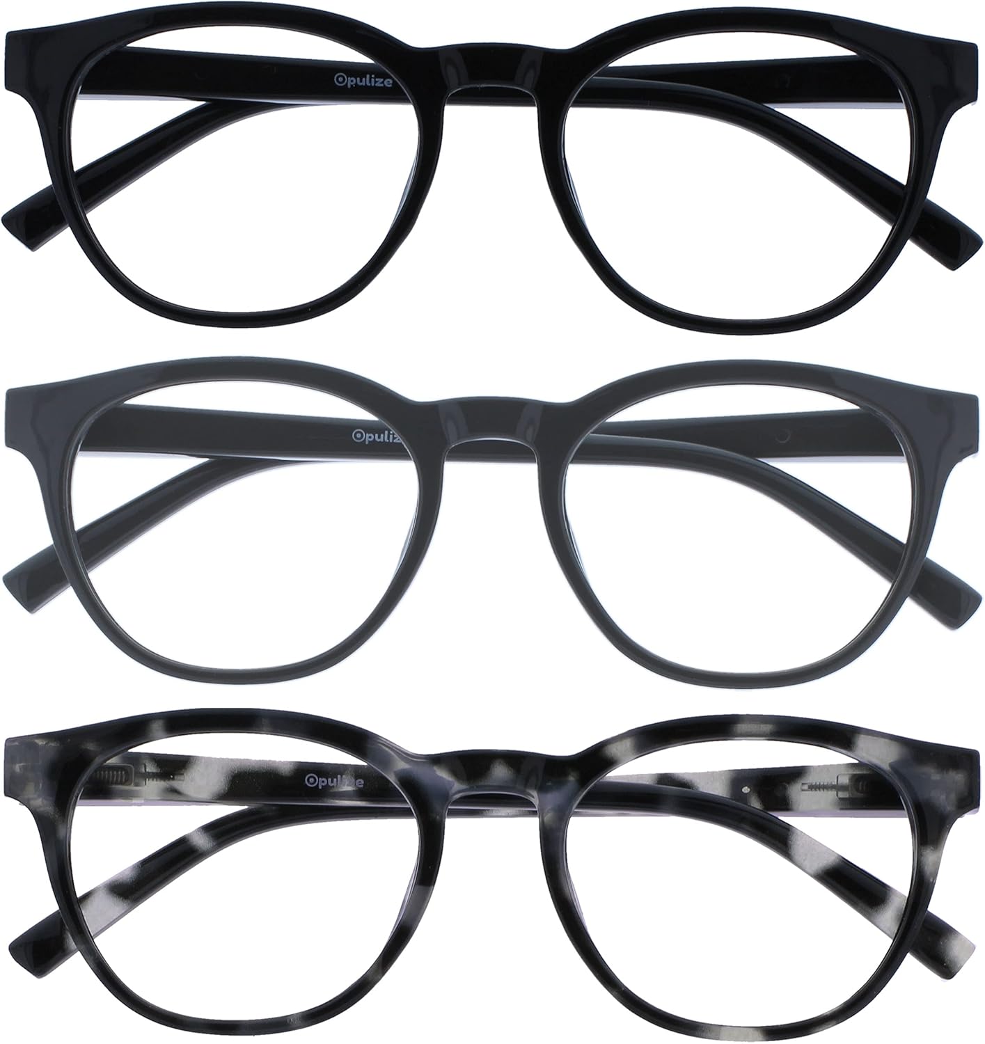 OPULIZE BLU Blue Light Blocking Glasses for Women Men – 3 Pack – Cool Round Frame – Anti-Glare Computer and Gaming Eyewear – UV and Eyestrain Protection – Improve Sleep – Black Grey Tort +0.00