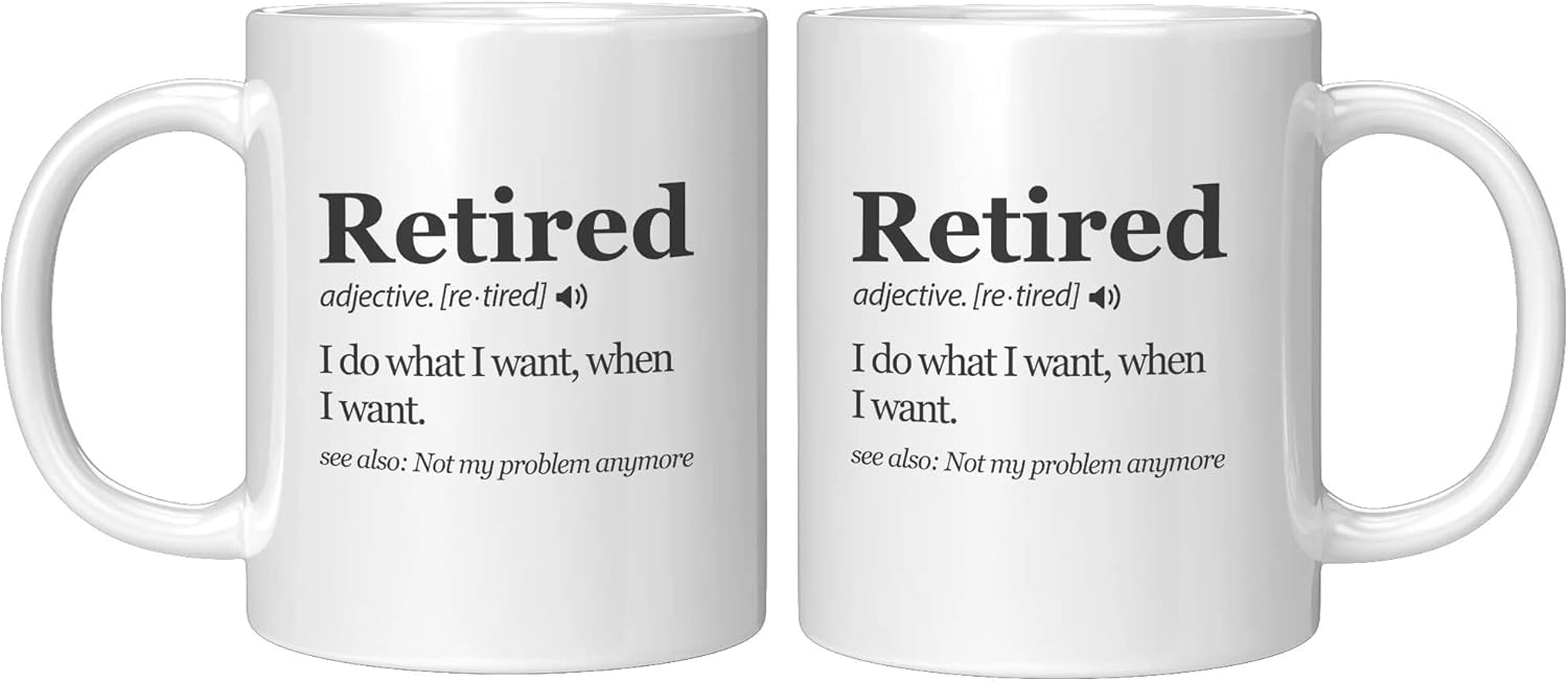Retired and Rewired: Congratulations, you made it to retirement! You’ve put in years of hard work and now it’s time to kick back and do what you want when you want. And with this hilarious “Retired Definition Mug,” you can proudly declare to the world that you are now “rewired” and free to live on your terms. This mug is the perfect reminder that anyone else’s schedule no longer binds you. So go ahead, indulge in a midday nap, or start happy hour a little early – it’s not your problem anymore.