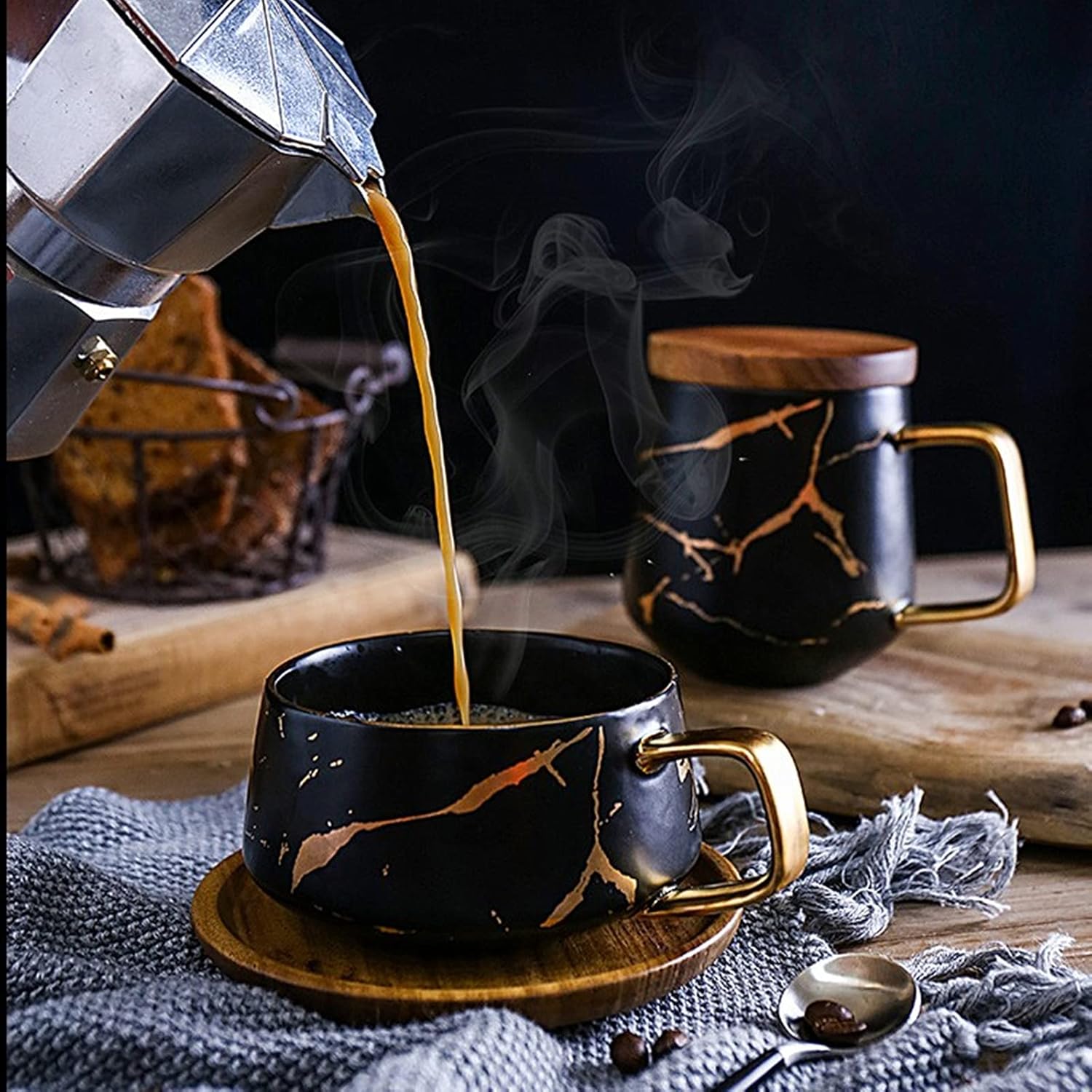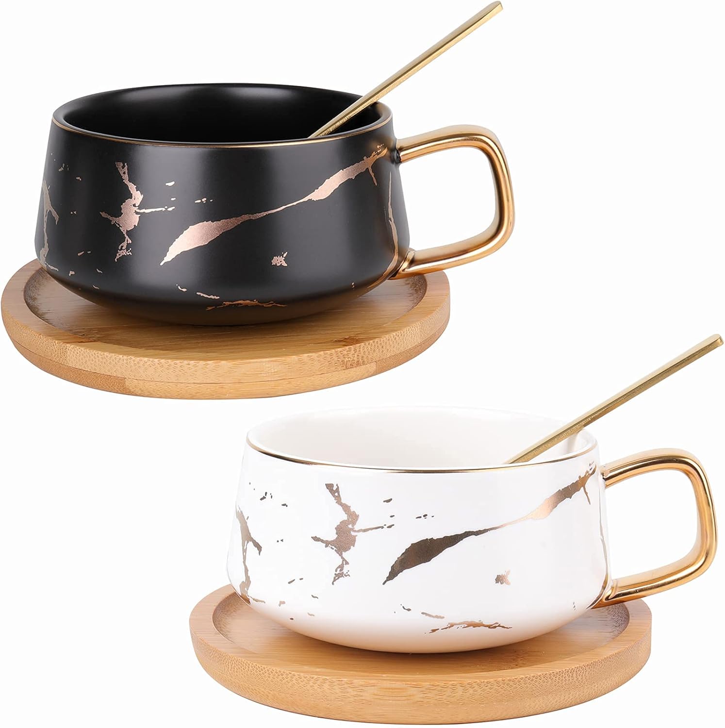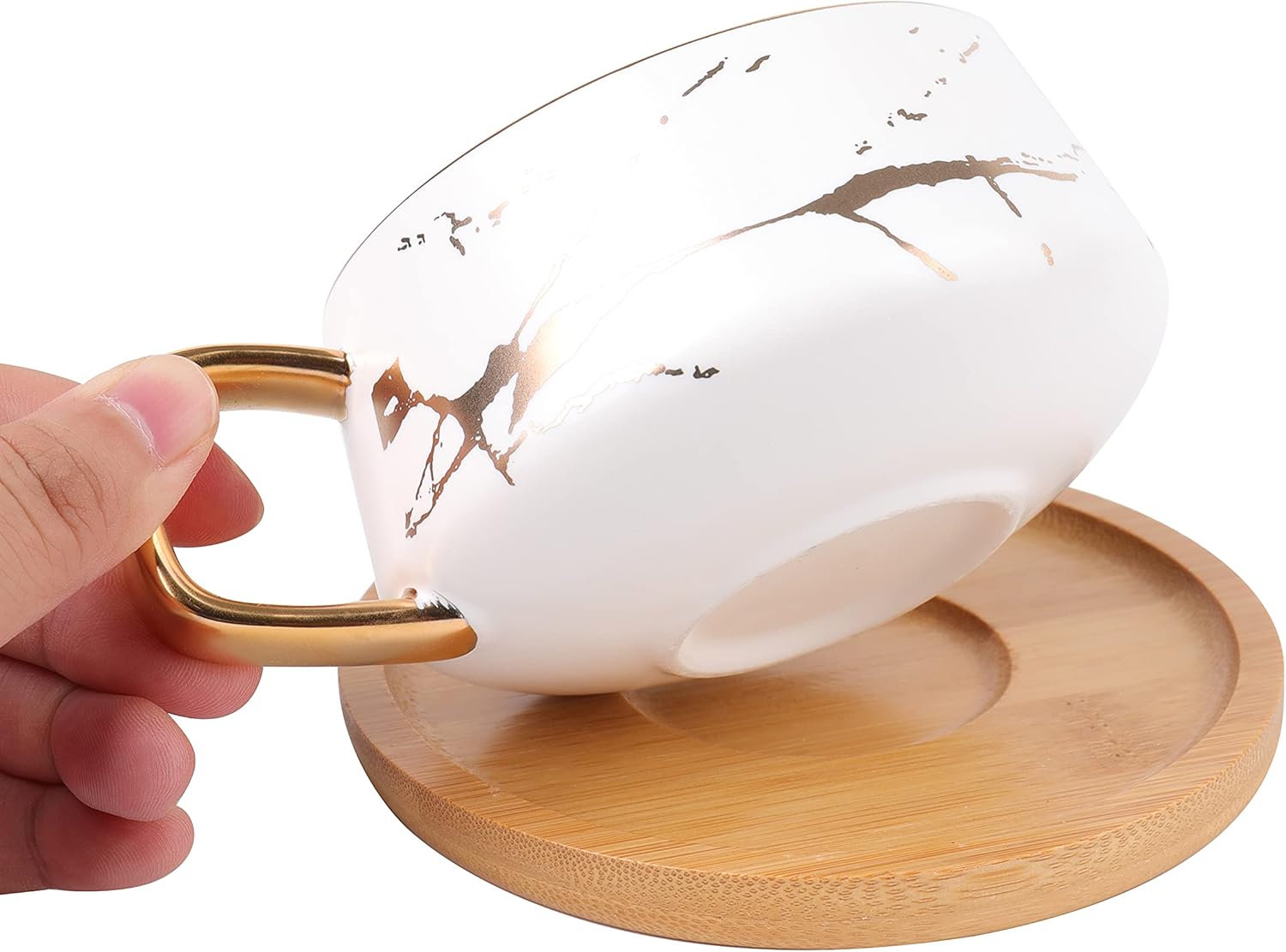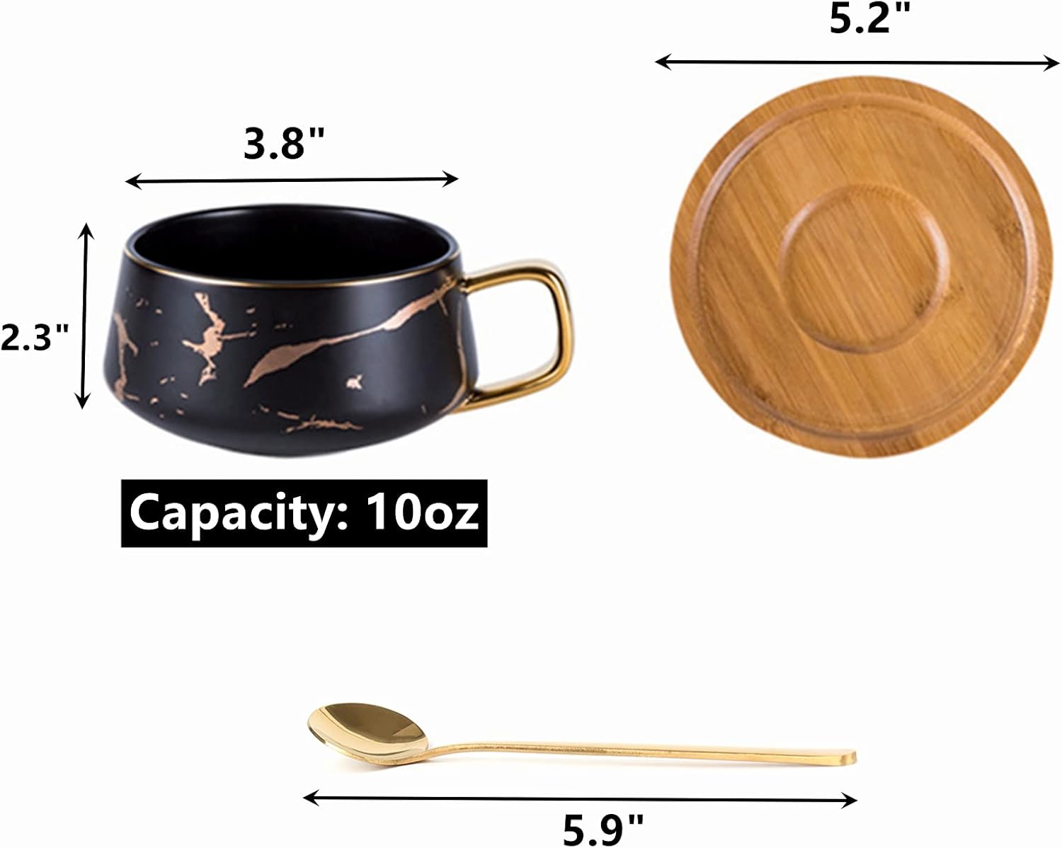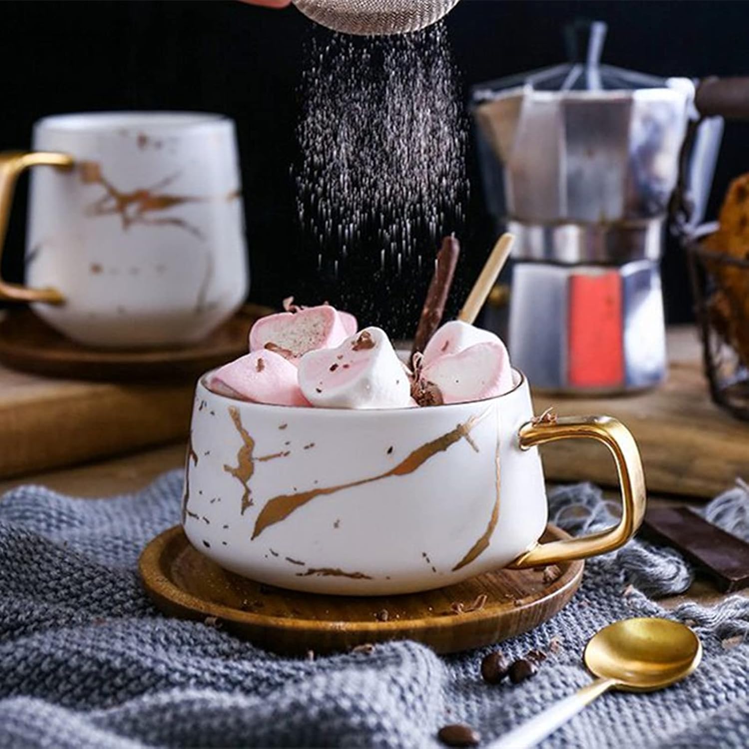 Modern Design: Matte glaze surface, luxury gold inlay and fashion marble pattern with beautiful gold-plated handle make up an elegant mug set. It will bring an artistic theme to your table.