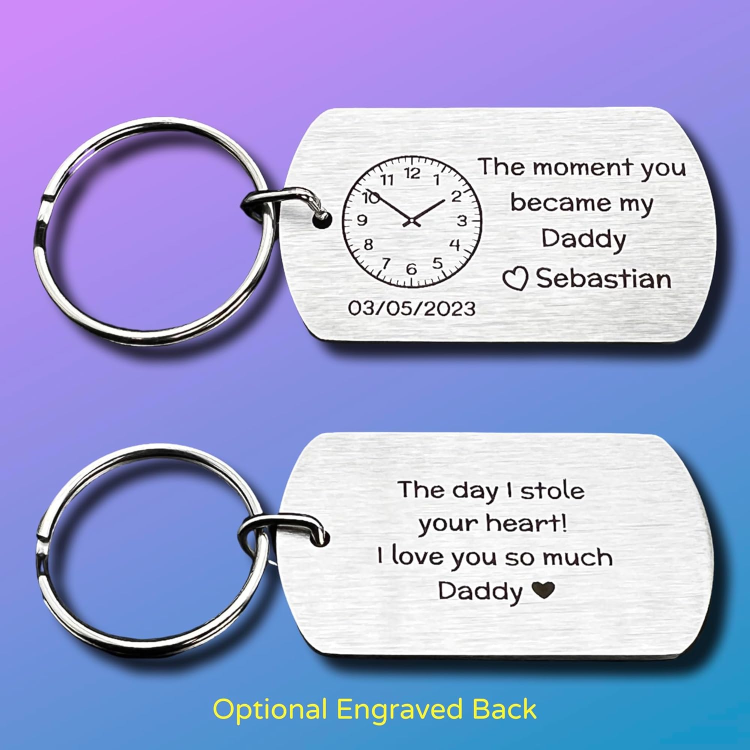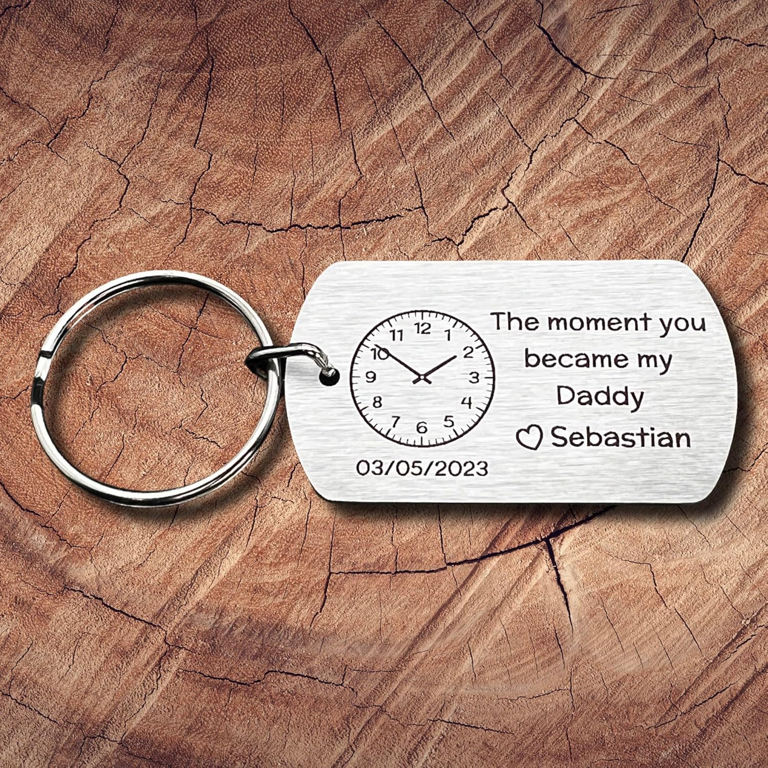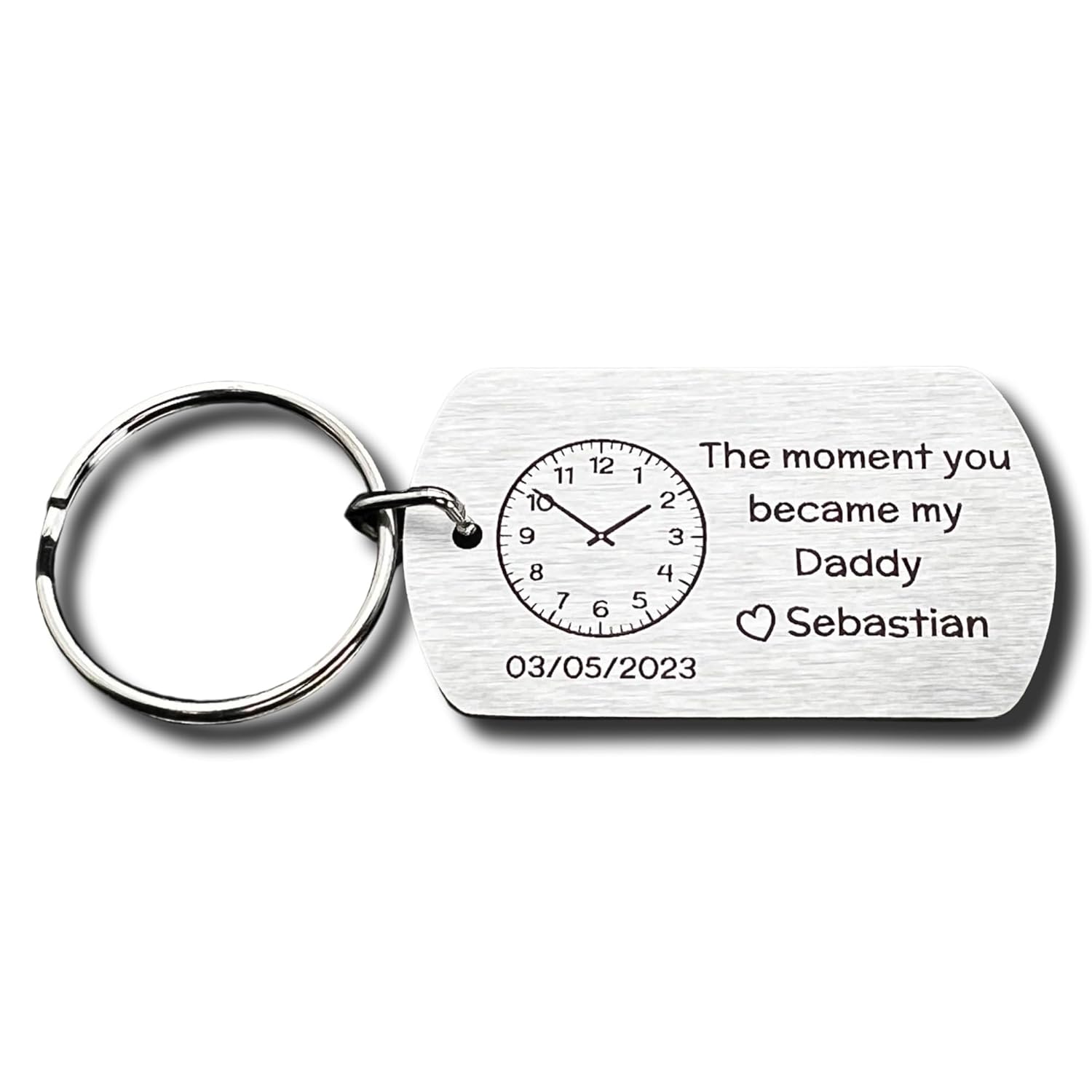CHERISHED MEMORIES – commemorate the joyous moment of your partner becoming a daddy by gifting them a metal keyring engraved with the exact date and time of your baby’s birth. The sentiment “The moment you became my Daddy,” accompanied by a love heart and your baby’s name, creates a touching keepsake that they can cherish forever
