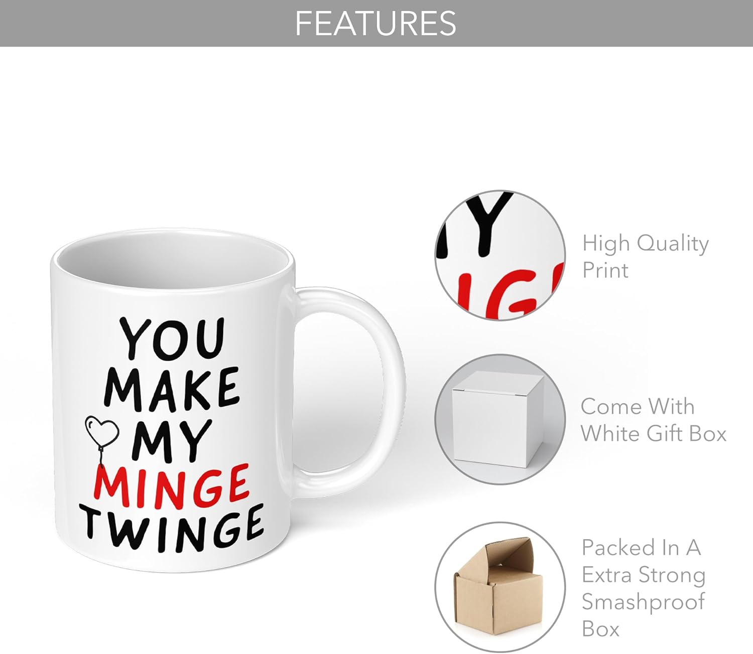 HIGH QUALITY: High glossy coating for a premium bright finish, 11oz white ceramic mug, great size for all drinks, Dishwasher and microwave safe, Lasts for over 3500 washes without fade, Packaged in ‘Smash-Proof’ boxes