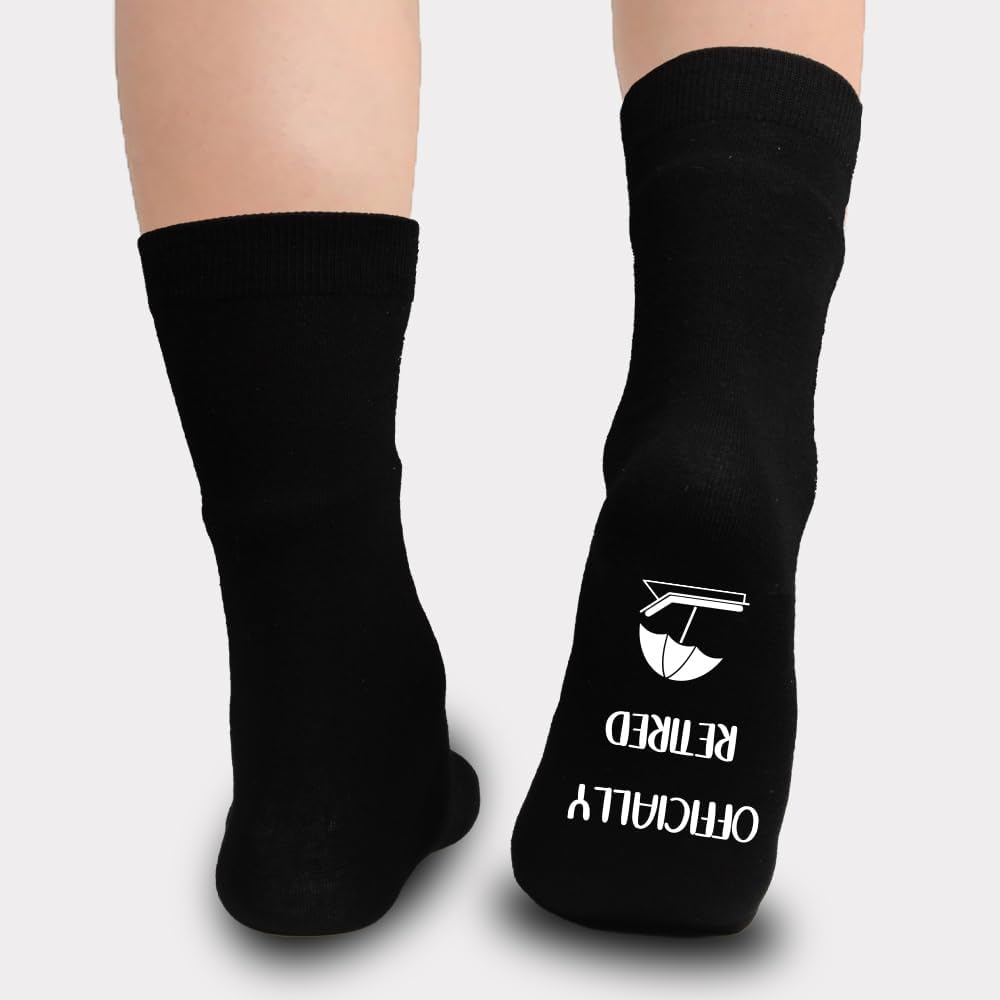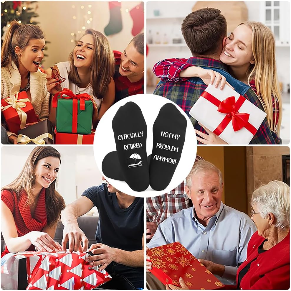 This product includes funny retirement gifts, socks, and gift ideas suitable for friends, grandads, colleagues, and teachers.