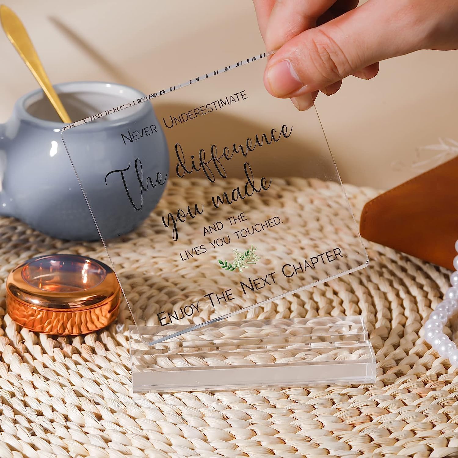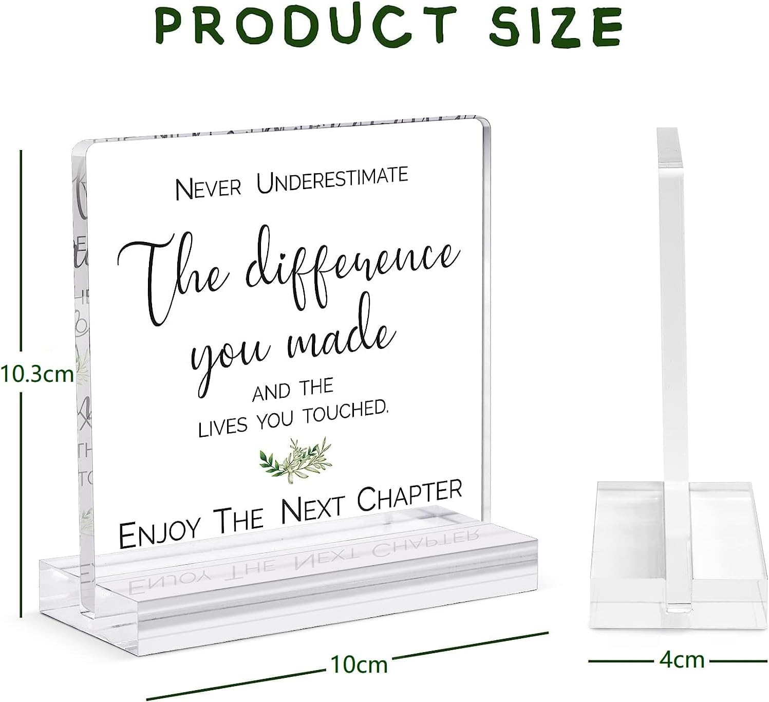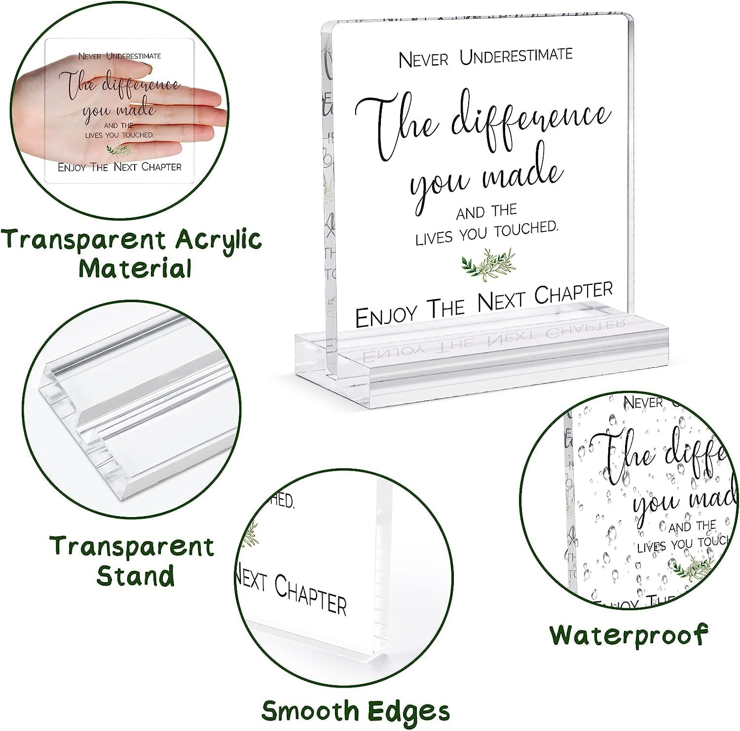 RETIREMENT GIFT: “Never underestimate the difference you made and the lives you touched, enjoy your next chapter”, the meaningful message is printed on an elegant transparent acrylic plaque, and comes with a smooth and sturdy acrylic stand.