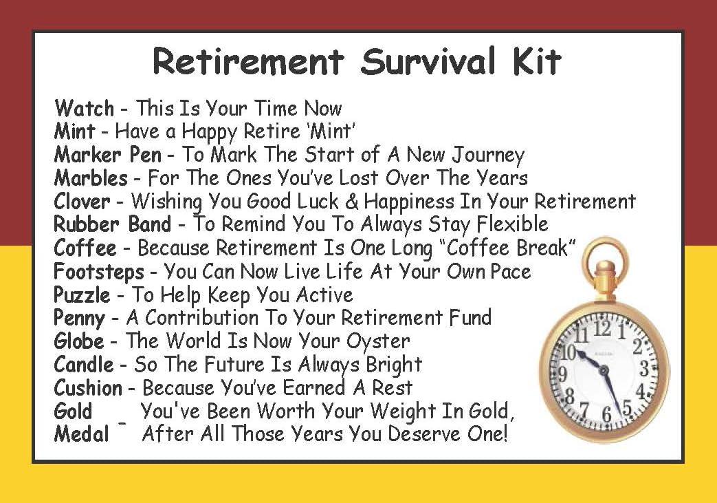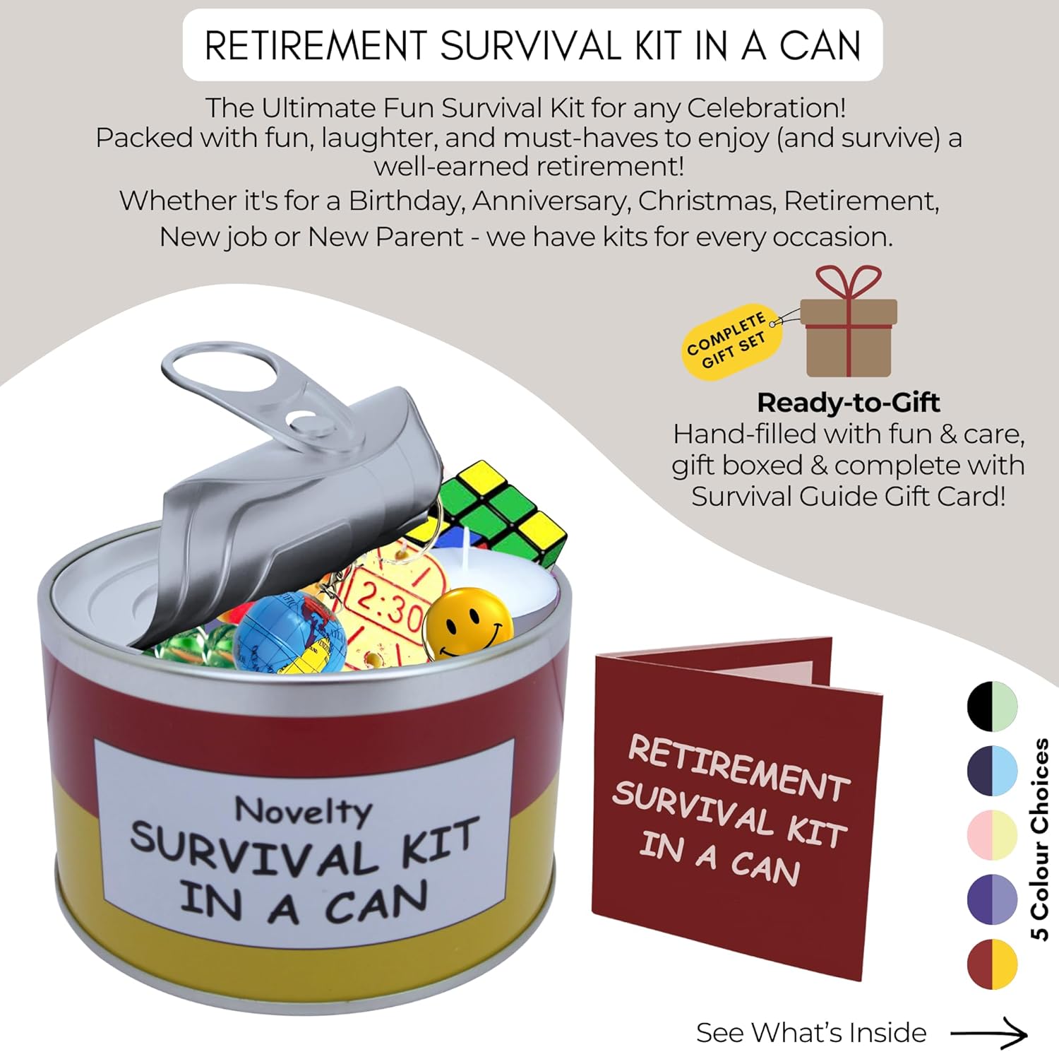 FUN RETIREMENT GIFT IDEA – A quirky retirement survival kit packed with novelty items to celebrate the big milestone. Perfect for anyone looking for retirement gifts for men or fun retirement gifts for women.