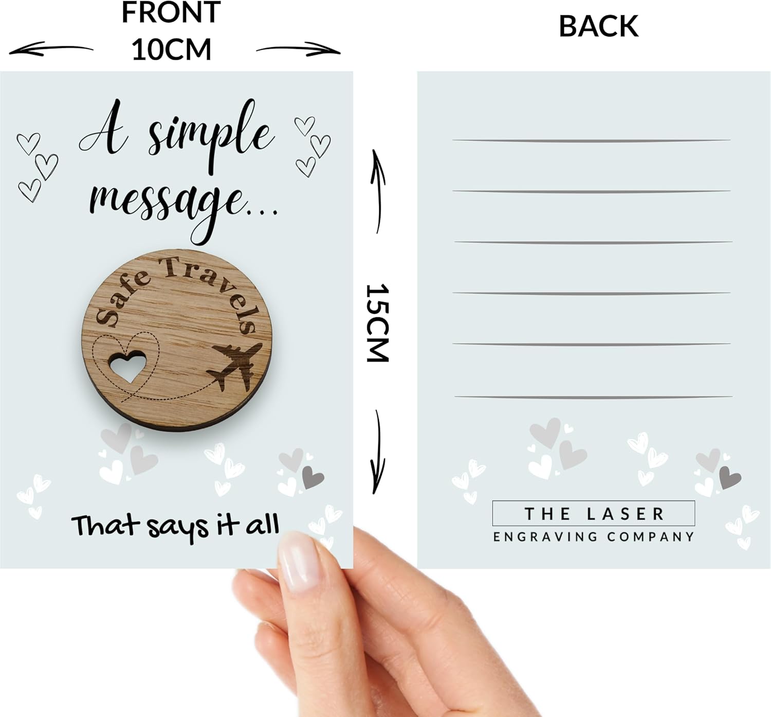 Our oak veneer Safe Travels token features a heart and an engraving of an airplane, symbolising love and adventure. A thoughtful keepsake to give to a friend or loved one as they set off on their travels or maybe a gap year. It is designed to slip easily into a pocket or travel bag as a reassuring talisman to accompany you on your travels. This is a wooden token and card set.