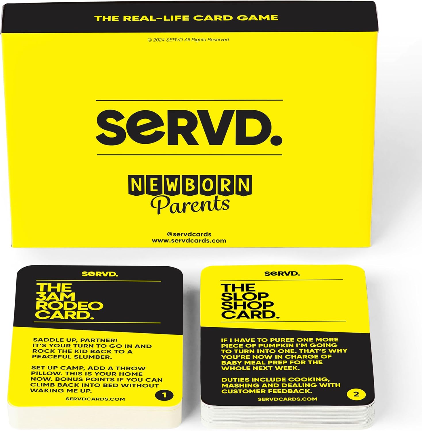 A must have game for new parents SERVD Newborns gamifies everything you could possibly think of when it comes to being a sleep deprived, exhausted and sometimes overwhelmed new parent, ensuring couples come out the other end not only stronger but also with a bunch of new, hilarious memories.