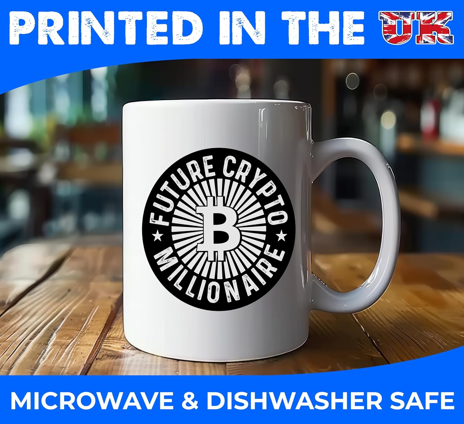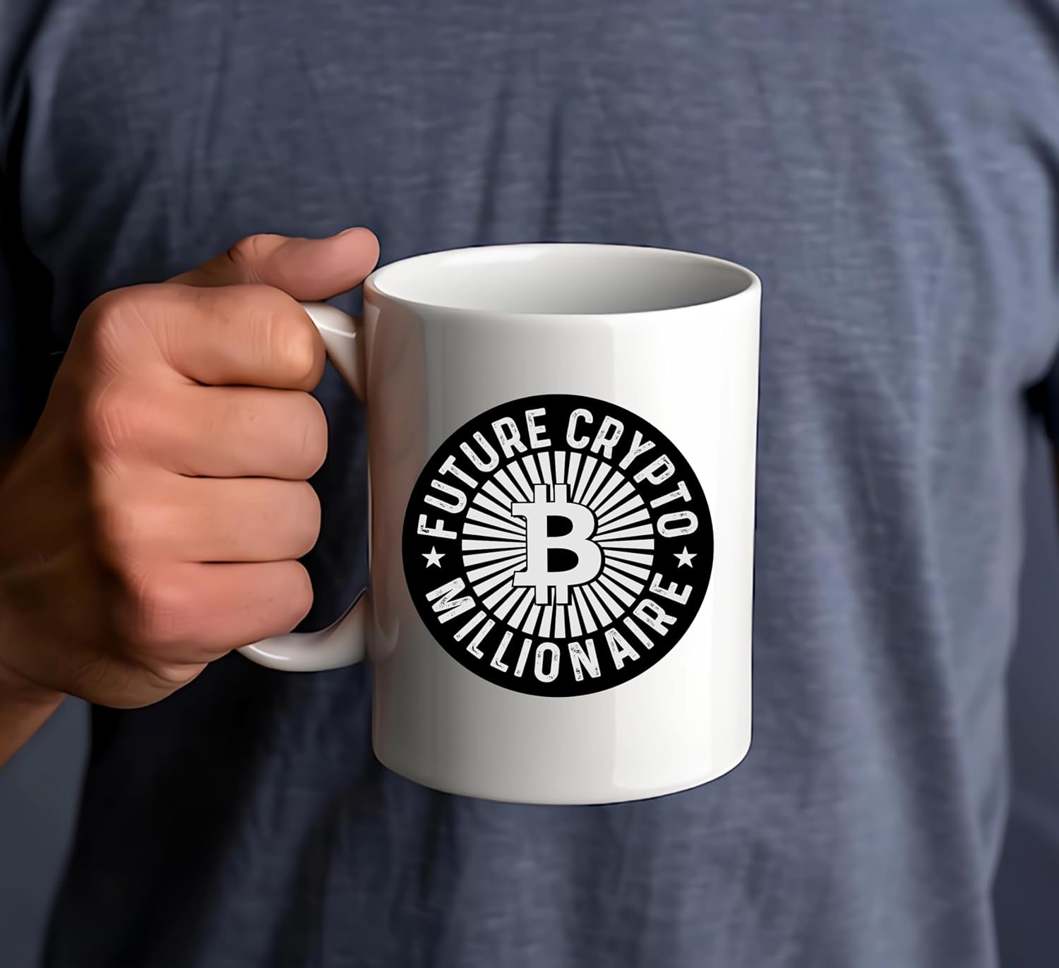 Crypto-Inspired Design: The “Future Crypto Millionaire” mug features a bold and humorous statement perfect for blockchain enthusiasts, Bitcoin traders, and cryptocurrency lovers.