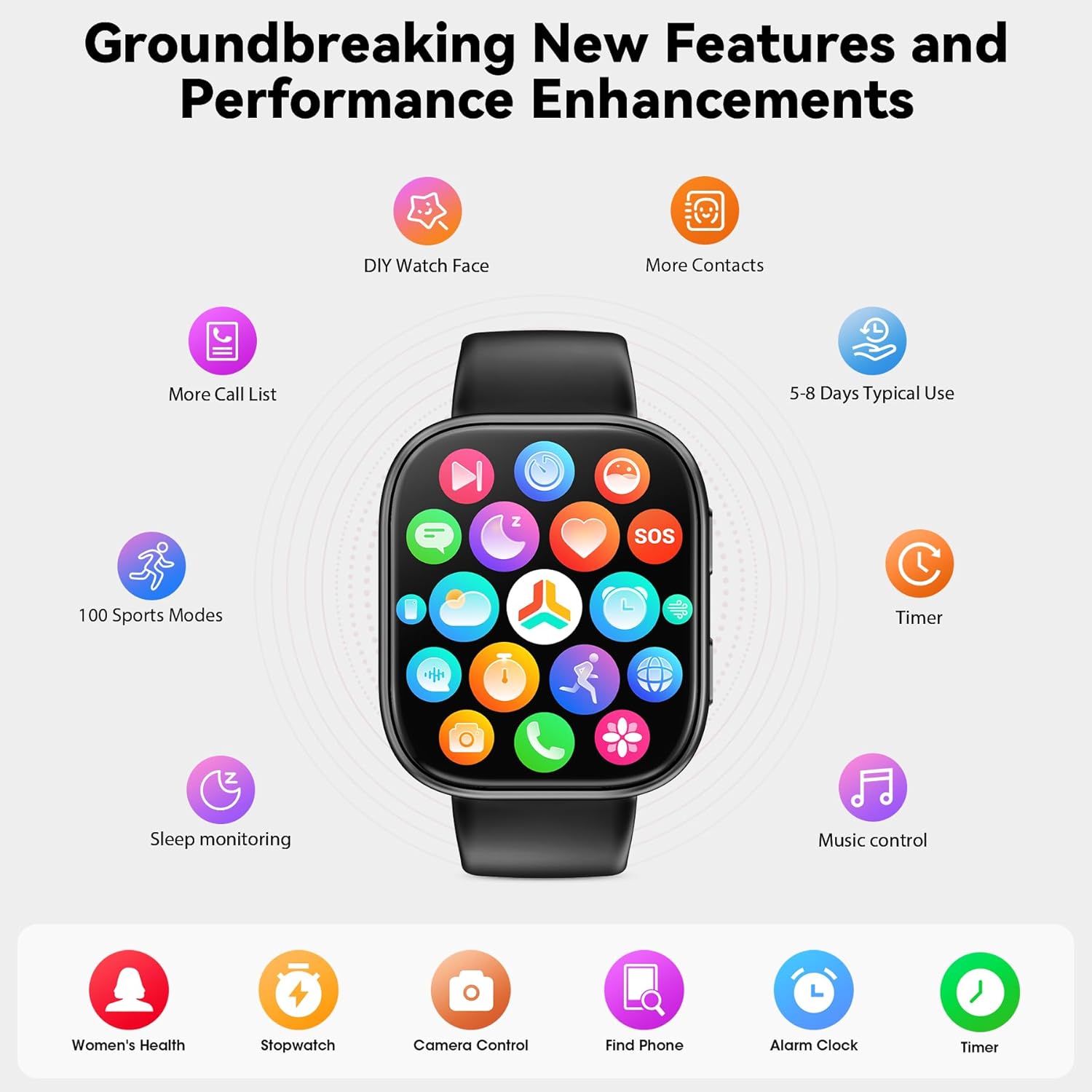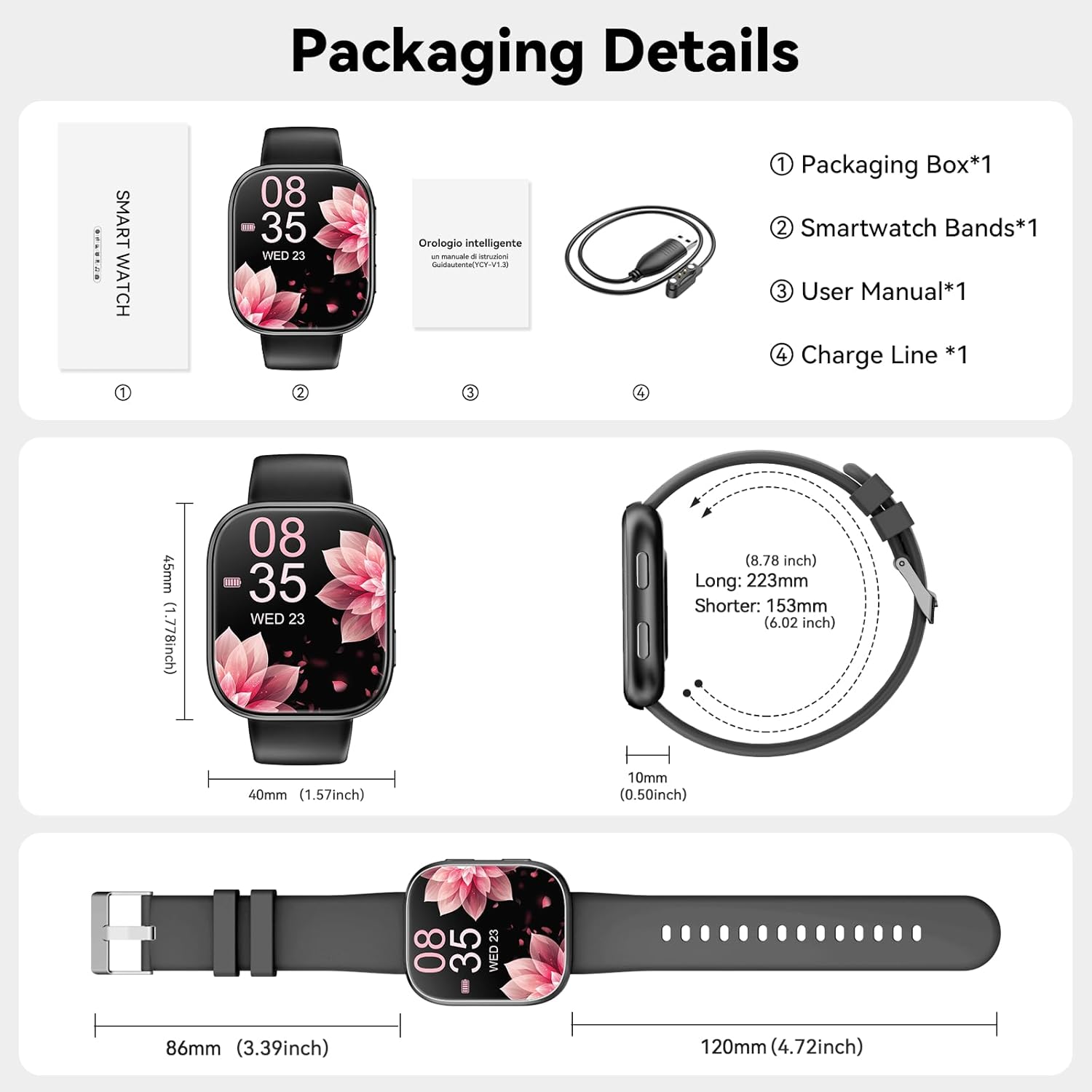 【1.83″ HD Display & Customizable Watch Faces】Smart watch Immerse yourself in a vibrant 1.83-inch TFT display, boasting a sharp resolution of 240*284 for crystal-clear visuals. Effortlessly personalize your smart watch with a wide array of customizable watch faces to suit your personal style for every occasion—whether trendy, artistic, or minimalist—ideal for casual, sporty, or professional. Its sleek, modern design complements any outfit, blending technology and fashion seamlessly for everyday wear.
