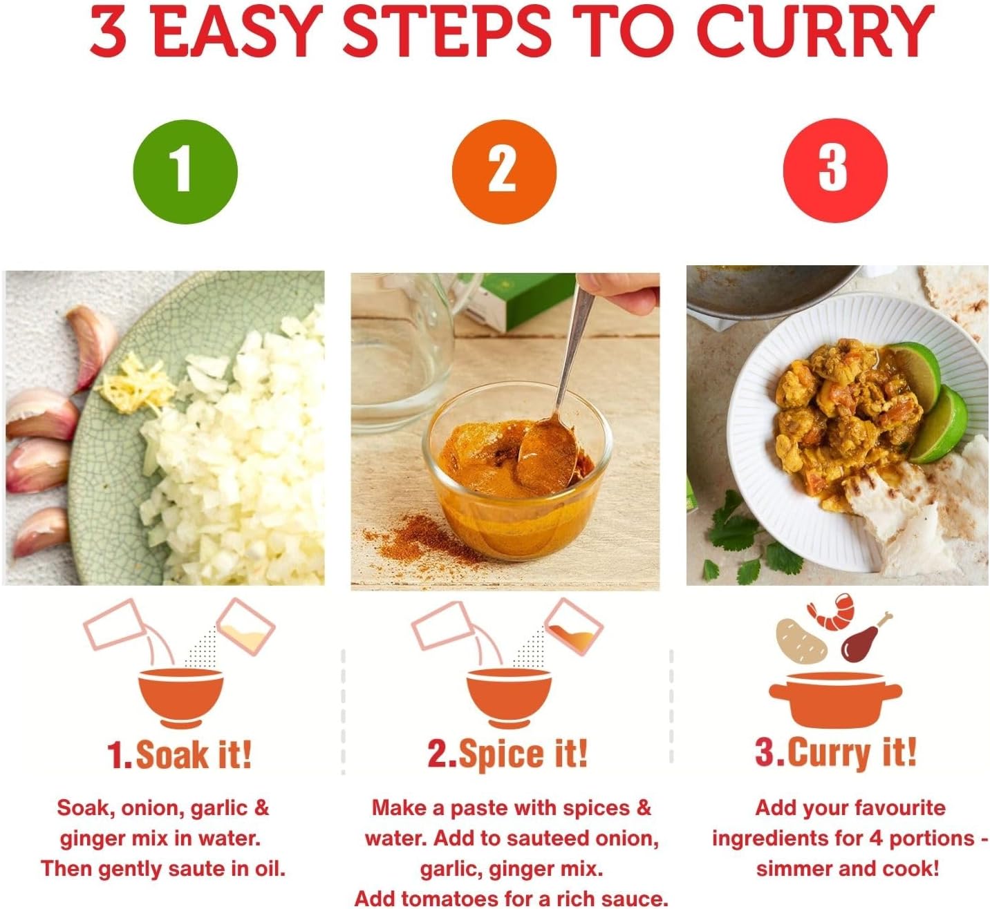 CREATE HAPPINESS: Our spice kits include all the herbs and spices & seasonings you need to create the perfect curry Sauce. All you need is onion, garlic, ginger and your favourite curry ingredients.