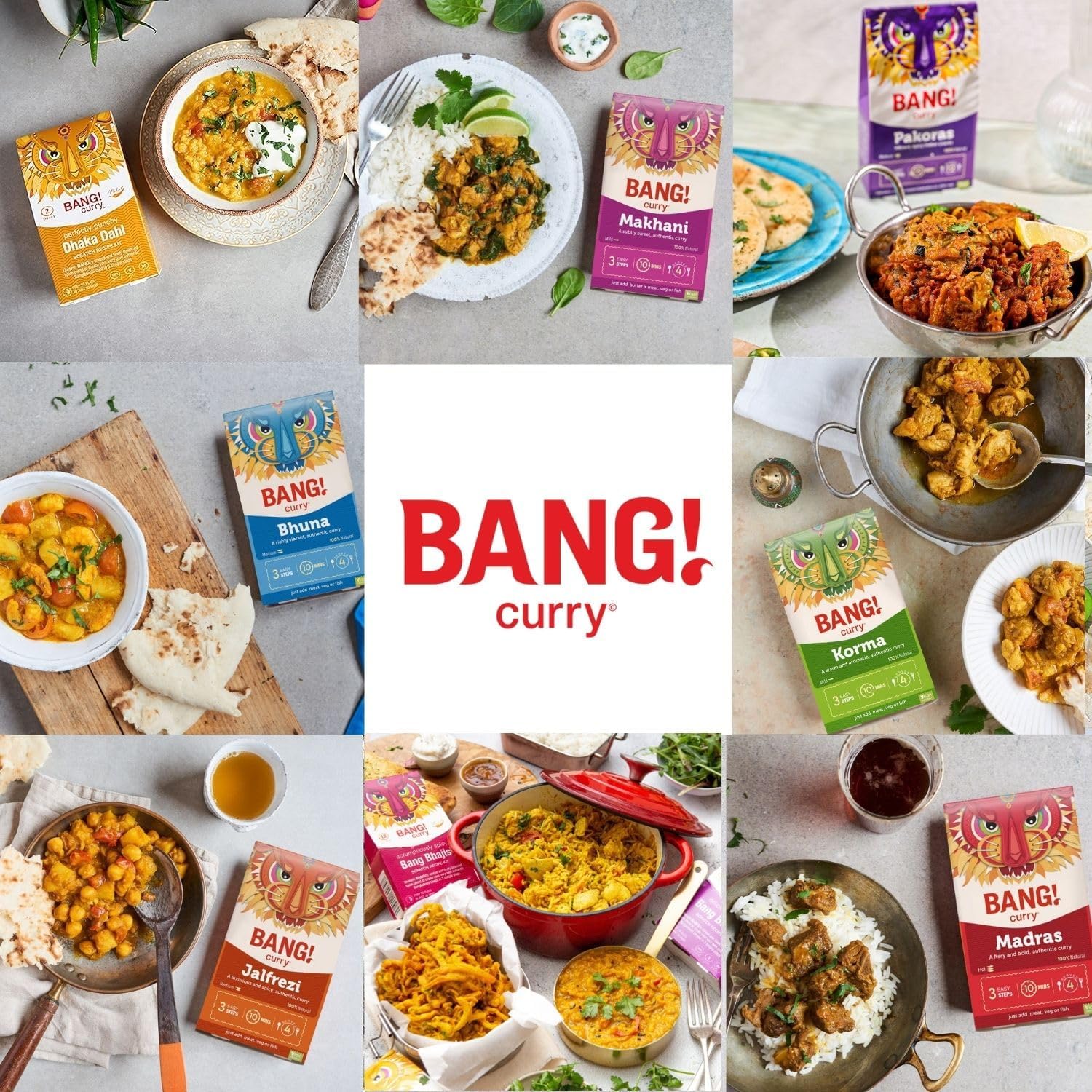 DELICIOUS: Award-winning authentic curry kits to make restaurant quality dishes, Tikka, Madras, Korma, Jalfrezi, Bhuna, Dahl, Bhaji and Pakora sides. The gift comes complete with easy-to-follow cooking steps and recipe tips and contains a variety of spice levels to suit all palates, from child friendly flavours to red hot Madras.