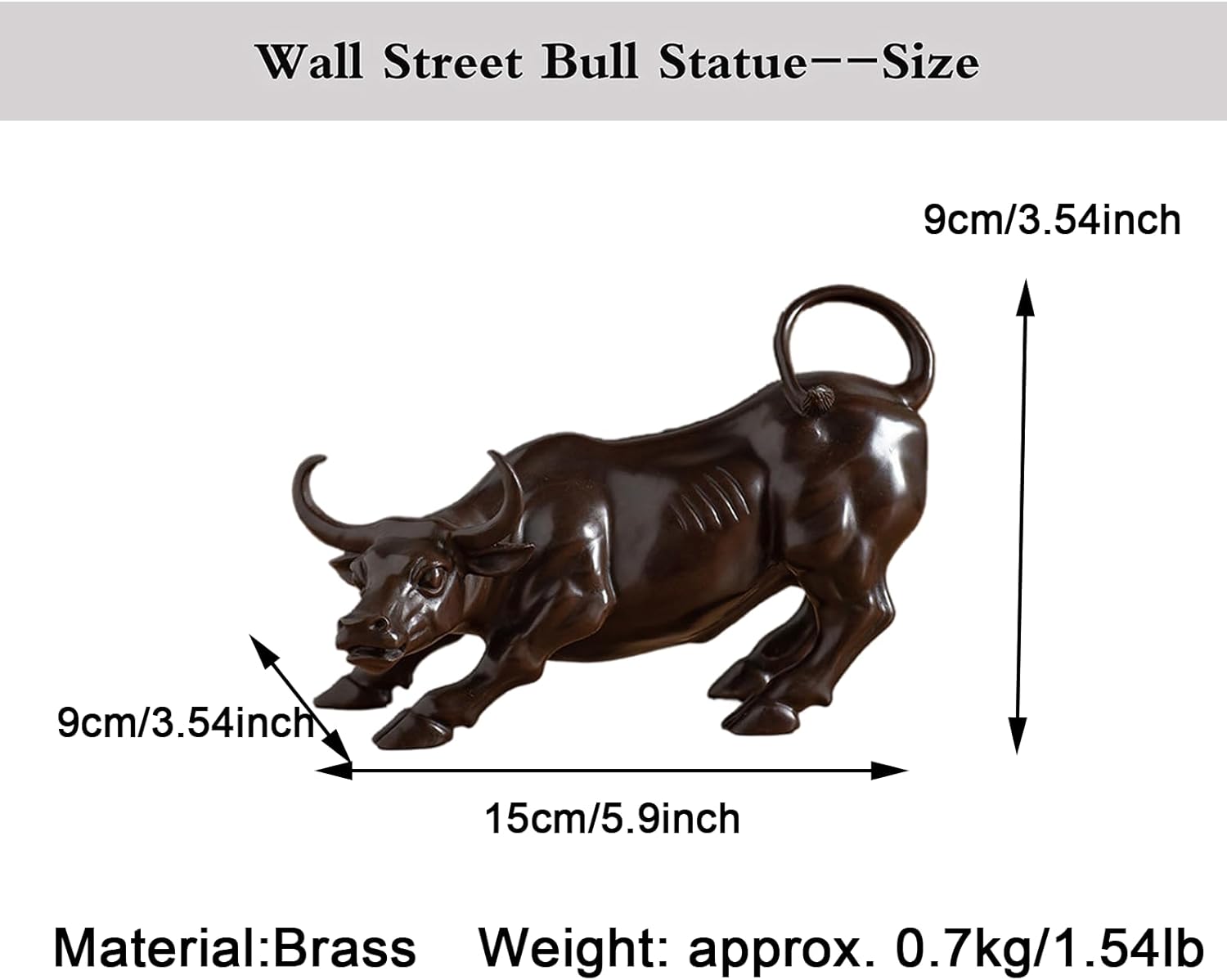 Size – 15 x 9 x 9 cm / 5.90 x 3.54 x 3.54 in / Weight: approx. 0.7kg/1.54lb.The finely crafted details of the Bullstatues give them an elegant and luxurious look. The statues are designed in a dynamic pose that radiates movement and power.
