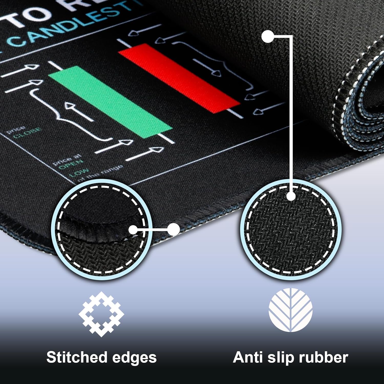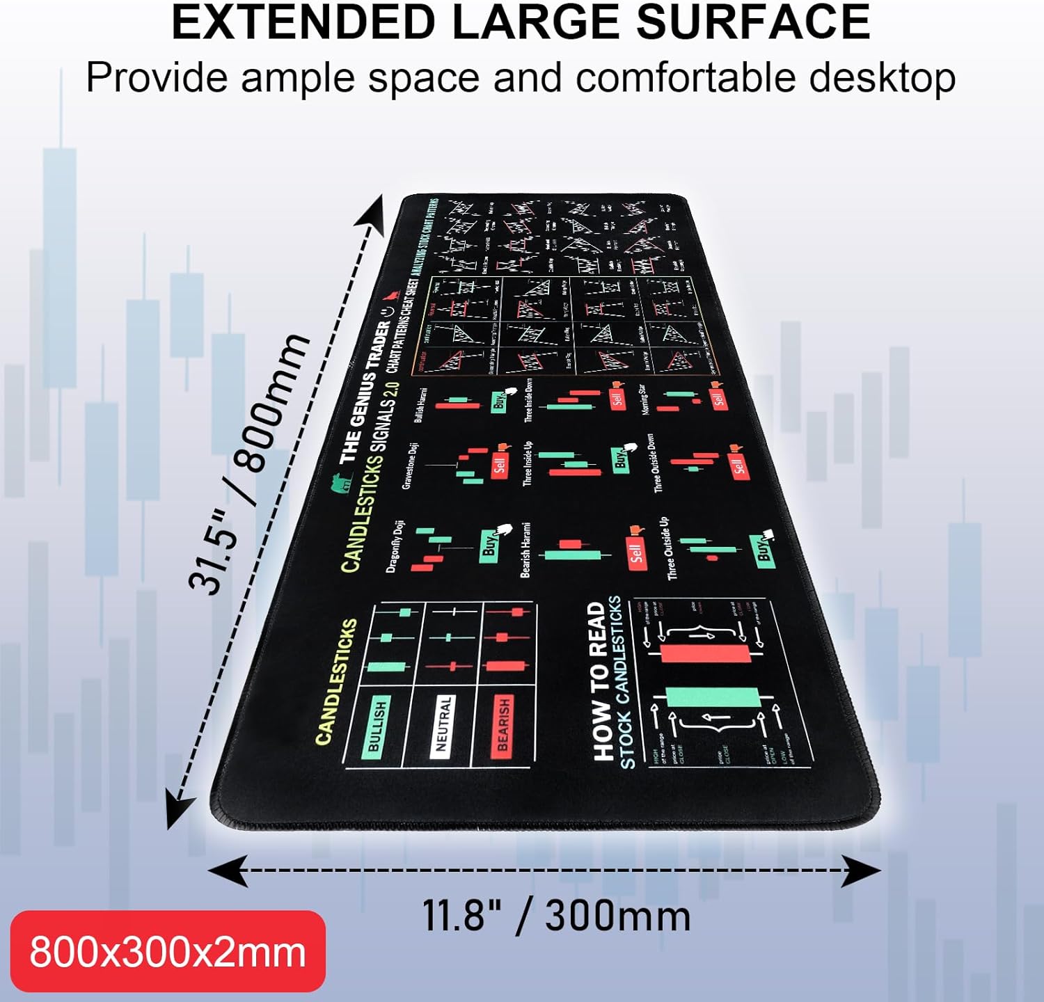 COMFORTABLE LARGE SIZE:The large mouse pad size is 31.5×11.8 inches, providing a spacious workspace that can easily accommodate a mouse and also serve as a writing or desk pad, meeting various office needs and making your desktop more tidy and organized.