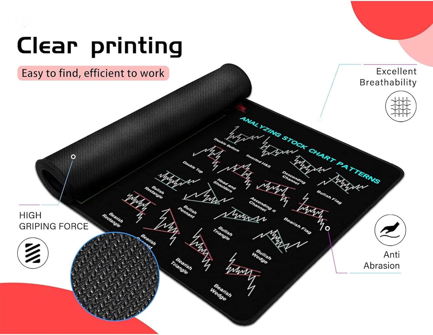 Eye-Catching Design: With various financial formulas, day trading indicators, and chart patterns, our stock market computer pad enhances user experience by grabbing attention