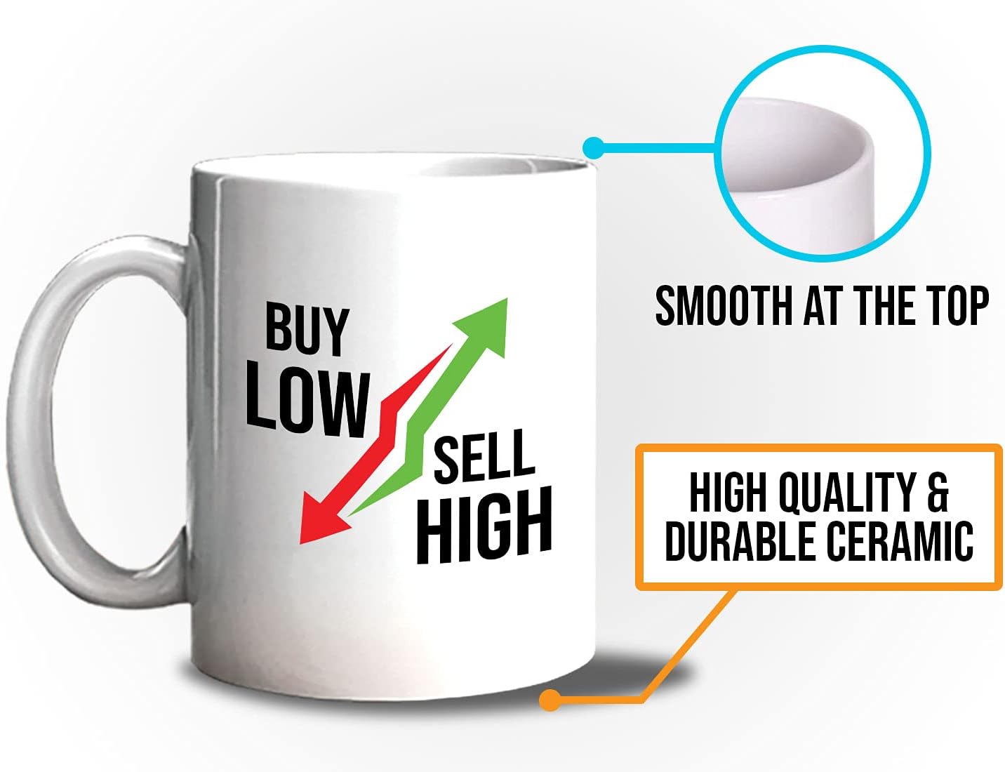Stock Trader Coffee Mug 11oz White – Buy Low Sell High – Day Trader Market, Currency, Exchange, Stock Trading, Rally Stock Trading Rally