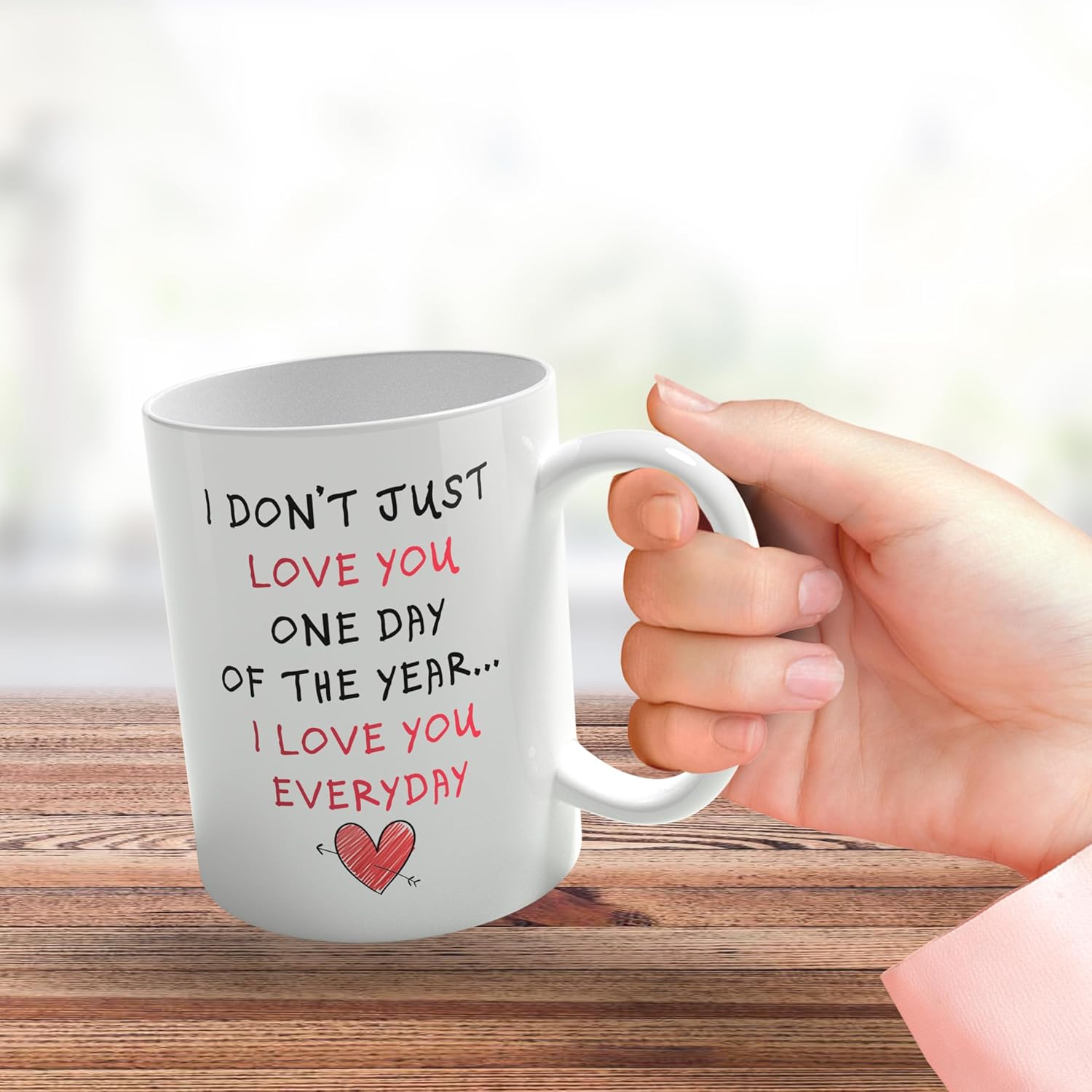MAKE THEM SMILE ON VALENTINE’S DAY: If you are looking for valentines day i love you gifts for him boyfriend birthday gifts then look no further. This exceptional quality mug bears the wording – I Don’t Just Love You One Day of The Year… I Love You Everyday – It’s bound to make them smile. Not just for valentine’s day this mug could be as a birthday gifts for him also. Celebrate your relationship with this mug for anniversary, boyfriend’s christmas gifts from girlfriend.