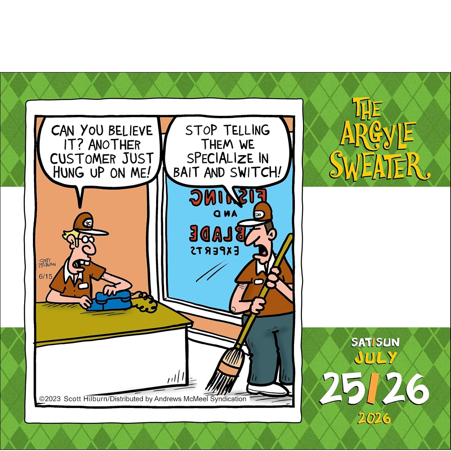 Each page of this The Argyle Sweater 2026 Day-to-Day Calendar reimagines pop culture, personal connections, and historical events with witty, pun-packed comedy, sure to inspire thought and provoke amusement all year long. With its unique blend of absurdity, cleverness, and imaginative humor, this desktop calendar promises a daily dose of surreal, slow-burn laughter.
