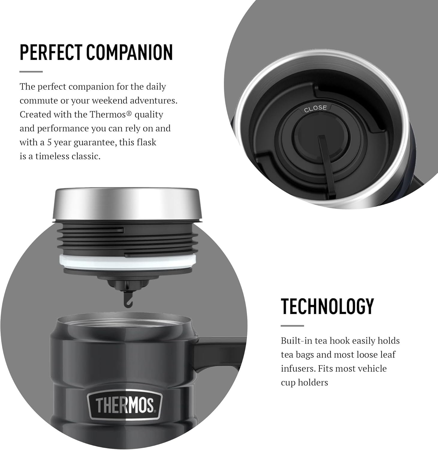 Durable Stainless Steel: Made with high-quality stainless steel for lasting durability, this Thermos travel mug reflects over 100 years of trusted performance. Stay hot or stay cool, effortlessly.