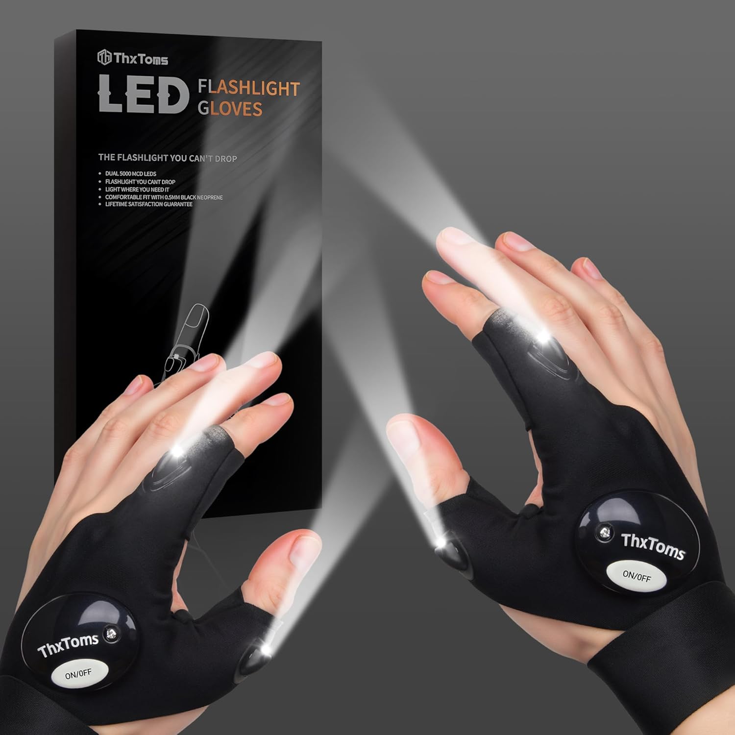 The gloves feature a finger torch design that allows you to illuminate specific areas while keeping your hands free for tasks.
