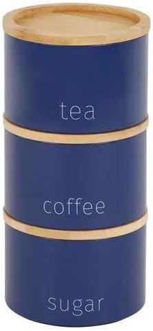 Tok Mark Traders Set of 3 Metal Stacking Canisters Tea Sugar Coffee Stackable Canister Mugs Easy Storage for Kitchen Office and Home, Gift | IDEAL for storing all your tea, coffee and sugar
