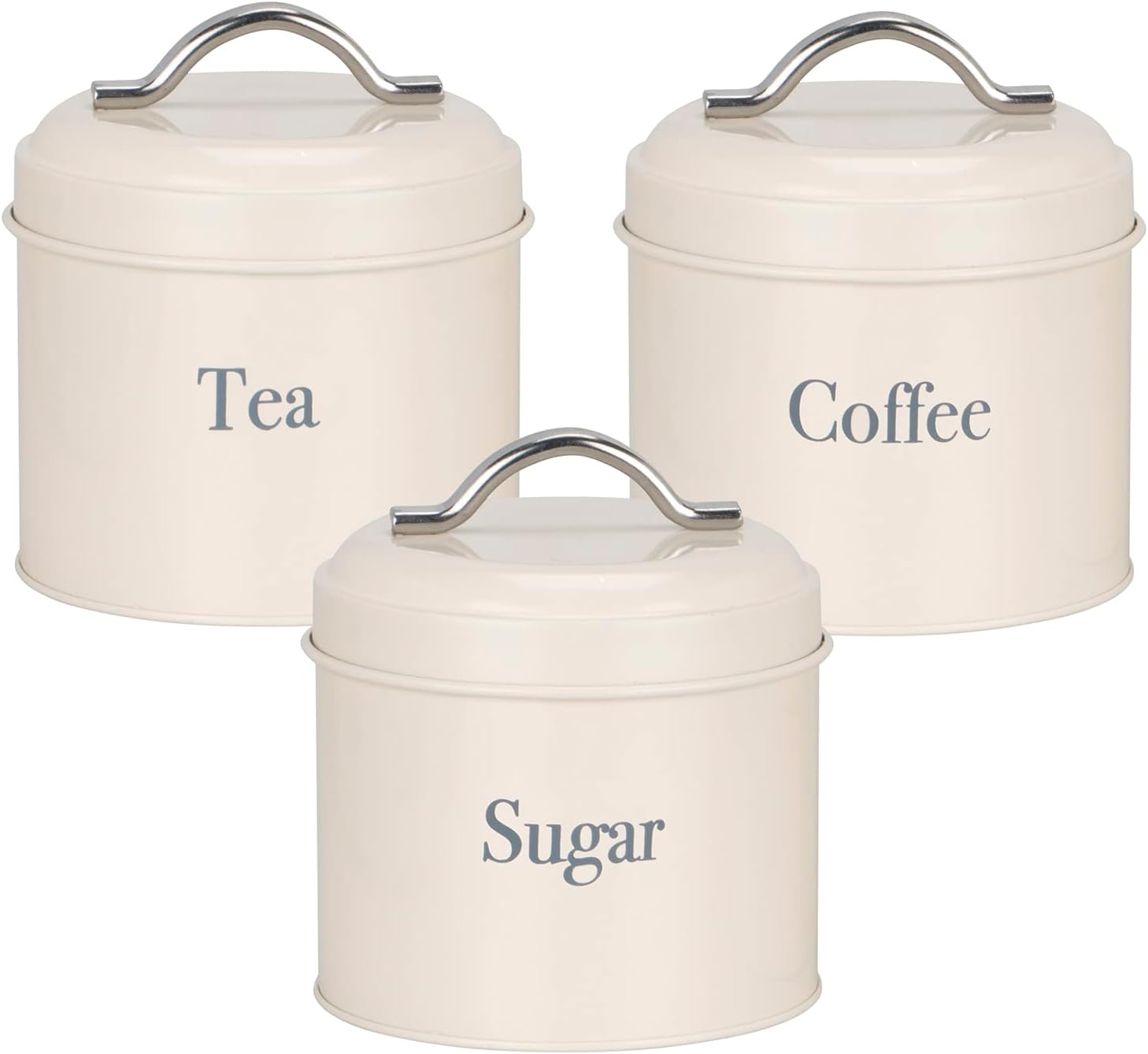 Set of 3 Tea, Coffee & Sugar Canisters in Cream