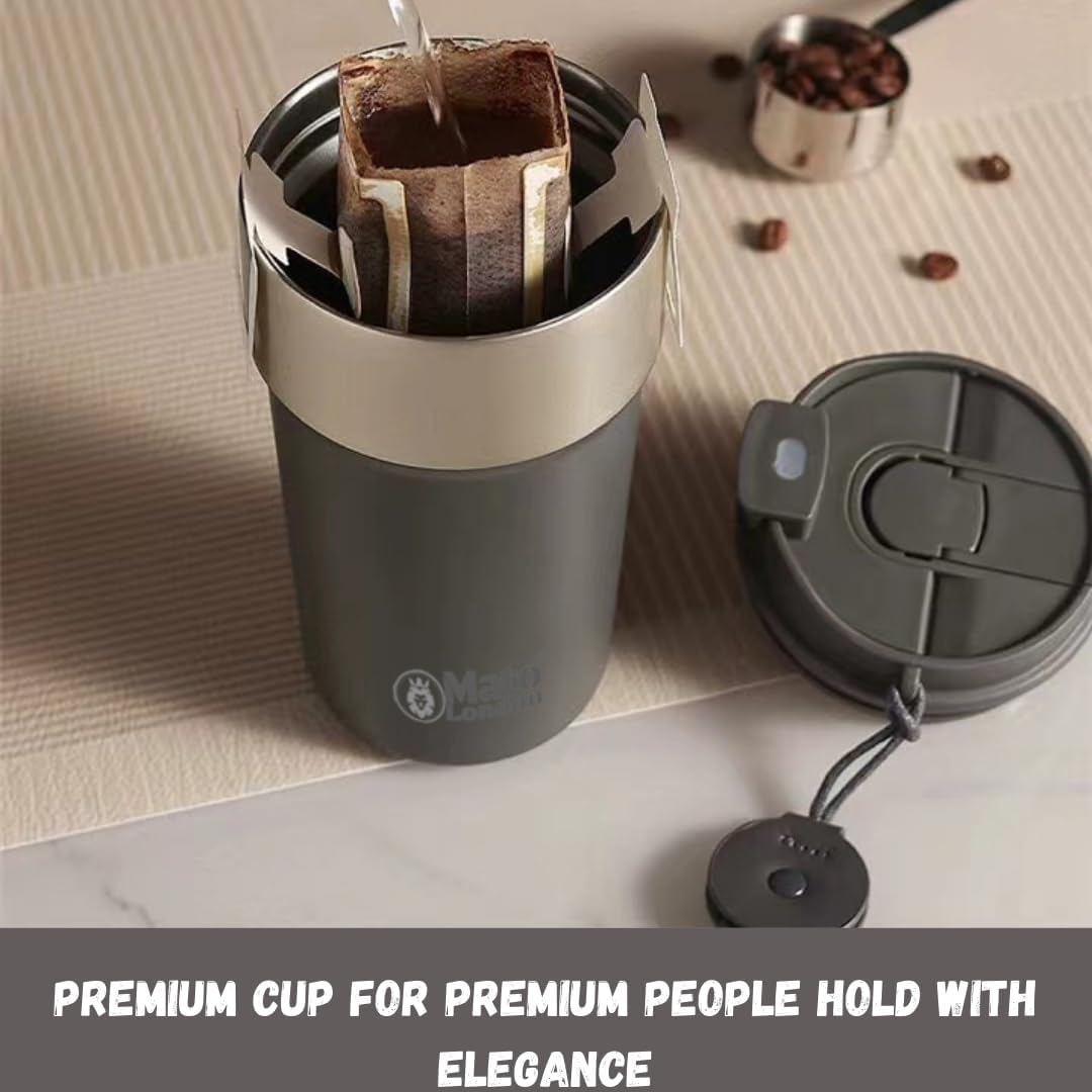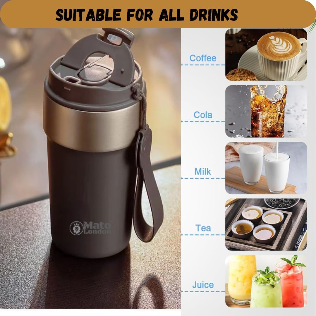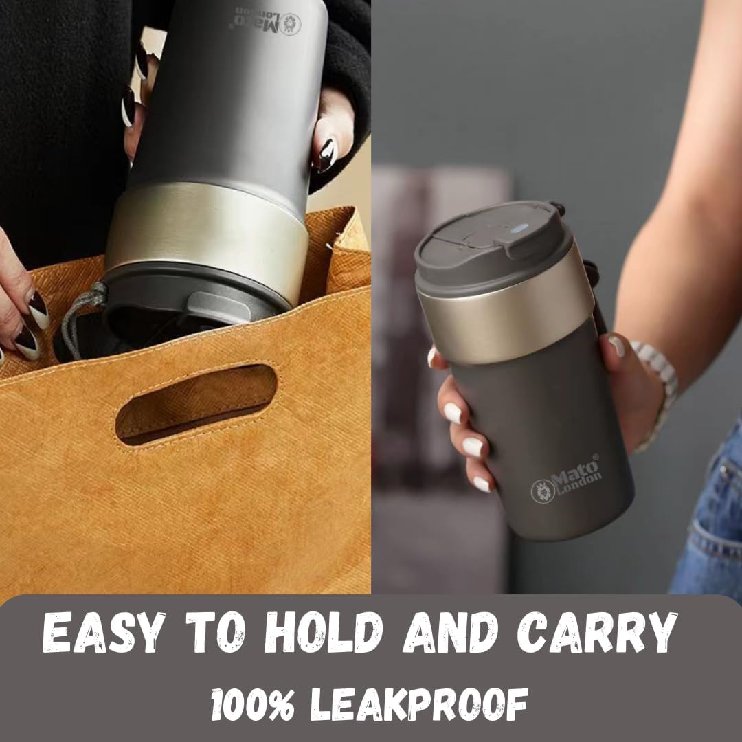 Introducing the MATO LONDON Premium Insulated Coffee Cup, your ultimate companion for enjoying delicious hot and cold beverages on the go. Whether you are rushing to a meeting or embarking on an outdoor adventure, this high-quality travel mug is designed to keep your drinks at the perfect temperature for extended periods. With its sleek black-grey design and BPA-free construction, our coffee cup not only looks good but is safe for daily use. This versatile 500ml coffee flask seamlessly adapts to your lifestyle, making it a must-have accessory for commuters, travellers, and coffee enthusiasts alike. Optimize every sip with our advanced double-walled insulation technology that maintains your drink’s ideal temperature—hot or cold—for hours. The easy-clean lid features a sophisticated mechanism that makes cleaning hassle-free while ensuring a leak-proof experience. Say goodbye to spills in your bag or car! This thermos travel mug is perfect for savouring cappuccinos, lattes, teas, and espressos anywhere you go. Our insulated cup fits perfectly into most car cup holders and backpack pockets, enhancing portability without compromising on style or efficiency. MATO LONDON’s Premium Insulated Coffee Mug doubles as an eco-friendly choice with its reusable design, reducing the need for disposable takeaway coffee cups. Enjoy sustainable sipping whether you’re holding a steaming Costa coffee cup during winter mornings or relishing icy cold refreshments in summer heat waves. Elevate your daily ritual with this travel mug that’s more than just a container—it’s a statement of convenience and elegance rolled into one impeccable piece of craftsmanship. Discover why this is considered by many as the best travel mug for hot drinks available today—get yours now and experience uncompromised quality wherever life takes you!
