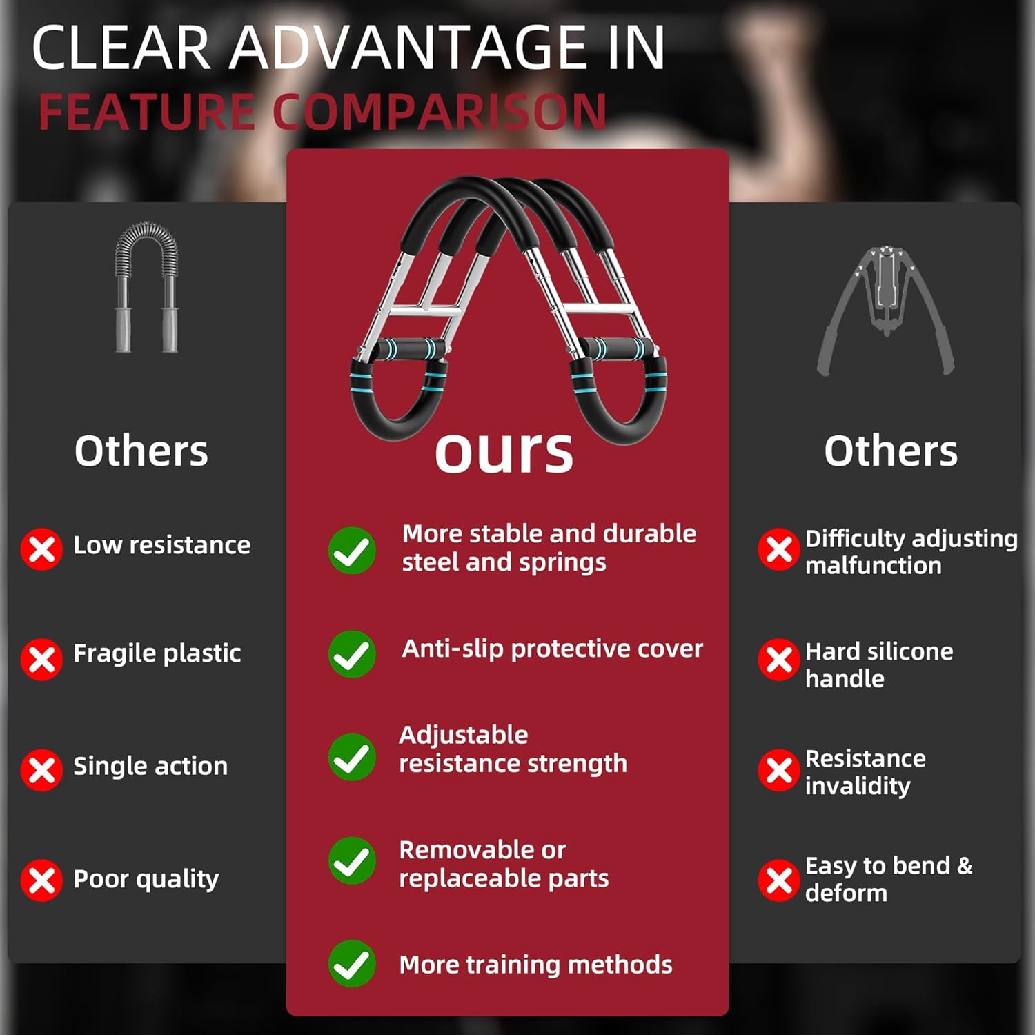 Upgraded Twist Arm Trainer – Designed for home fitness enthusiasts, this versatile strength-training tool offers a robust resistance range of 20-140lbs with an adjustable advantage of 3 springs, catering to both men and women. Ideal for sculpting chest, shoulder, and forearm muscles, the chest exerciser delivers targeted exercise for comprehensive arm shaping and toning. Compact yet powerful, it’s the perfect addition to your home workout equipment collection.