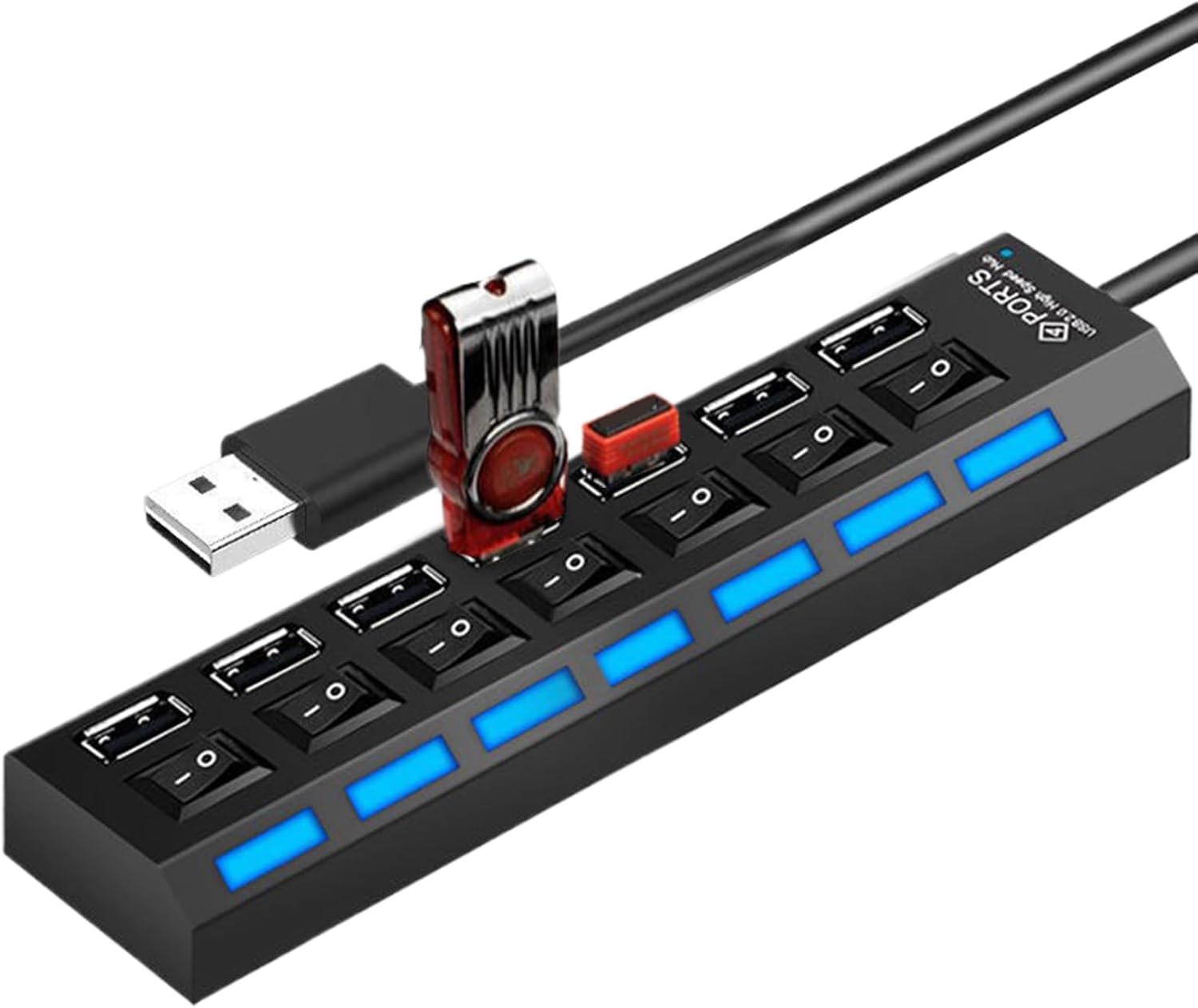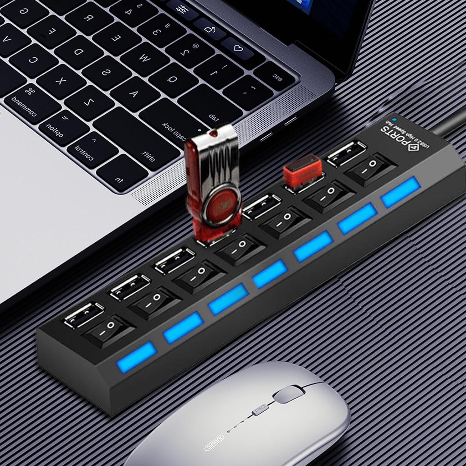 Features individual port switches that allow precise energy management, ensuring each USB hub port operates independently to minimize energy waste and prolong interface lifespan