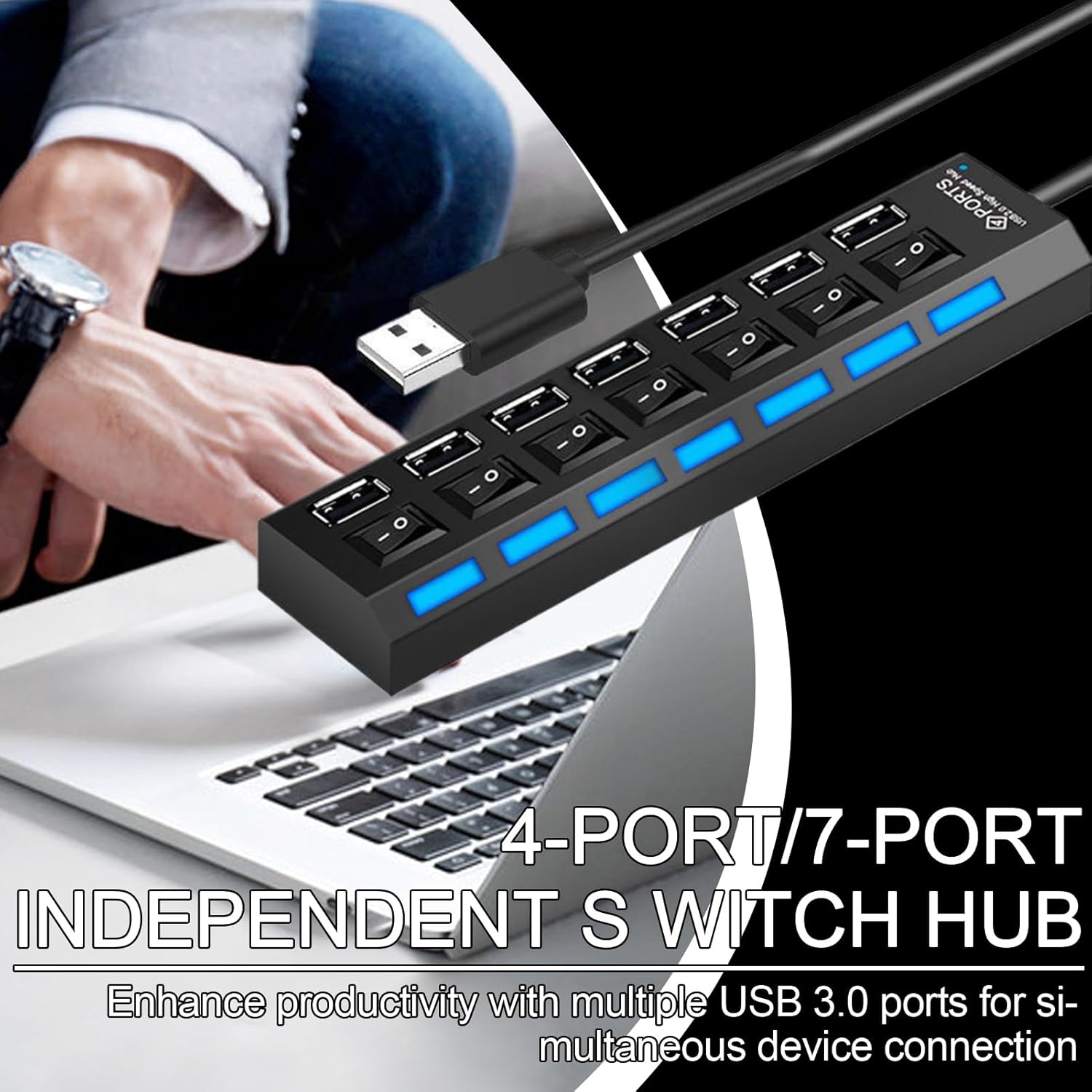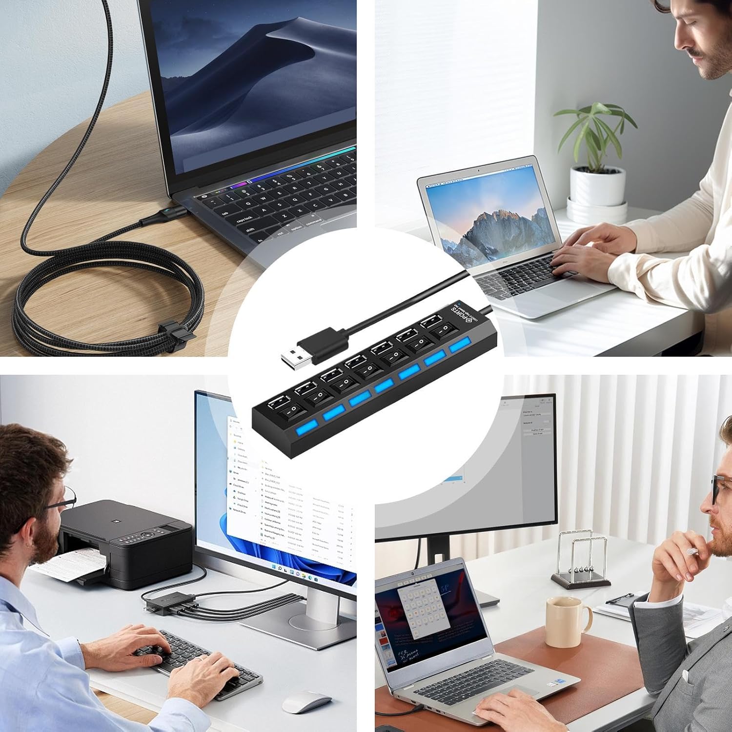 Energy-Saving Design: Features individual port switches that allow precise energy management, ensuring each USB hub port operates independently to minimize energy waste and prolong interface lifespan