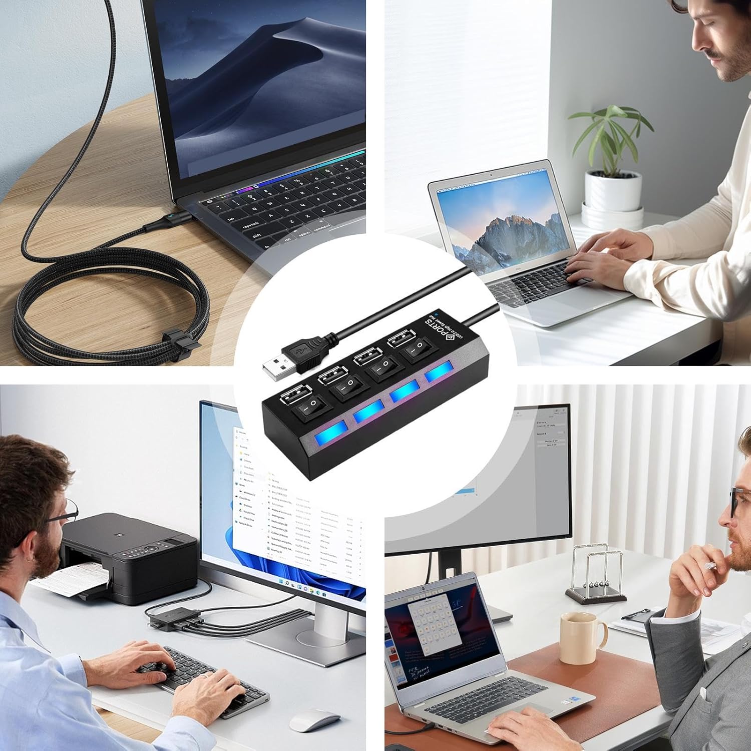 This USB hub is portable and compact, making it ideal for home game setup, travel, studio, classroom, co-working space, trading desk, video editing, photography, or remote work. The anti-slip design ensures stability, while the independent button has multipurpose functionality.