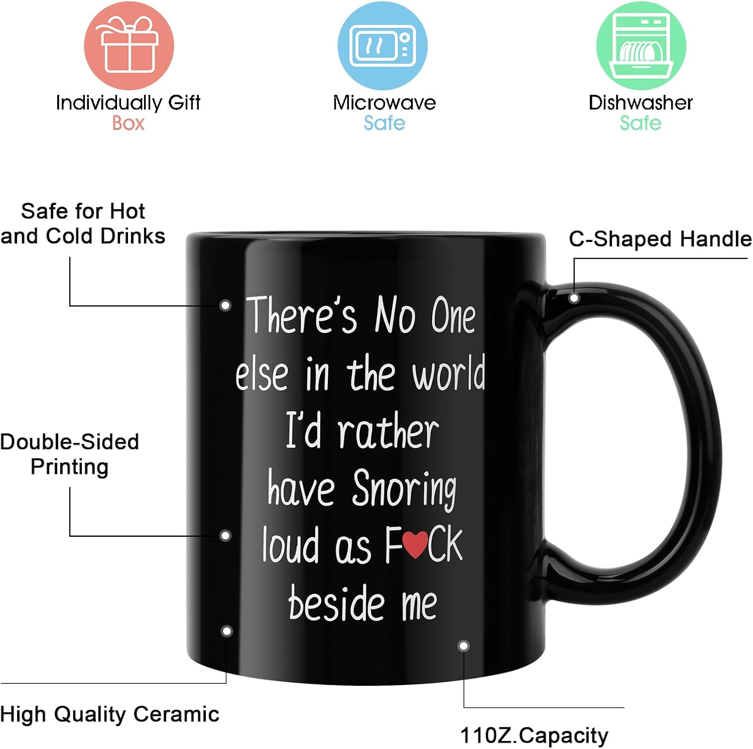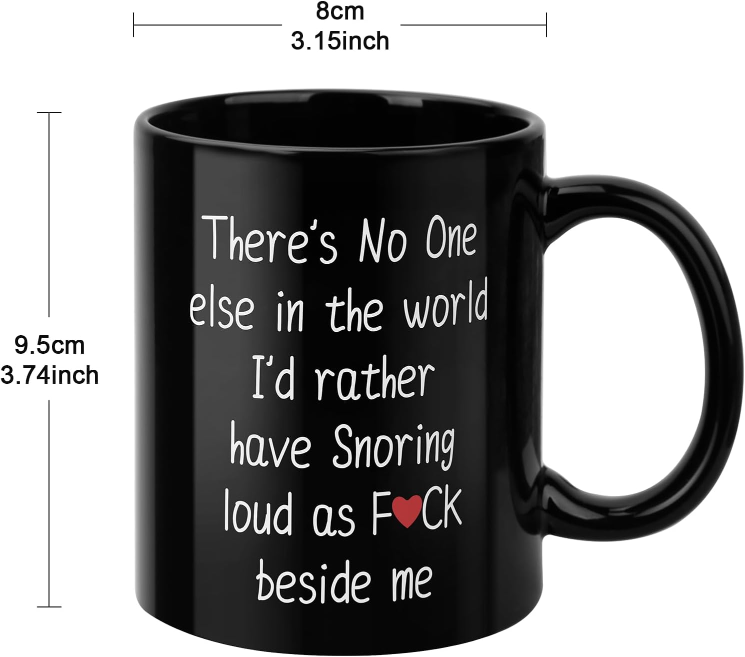 Valentines Gifts:Both sides are printed with “There’s No One else in the world I’d rather have Snoring loud as F*ck beside me”.This interesting cup is made of ceramic, laser printed with text, easy to clean and durable, but it is best to wash by hand as dishwashers may damage the integrity of the surface text.