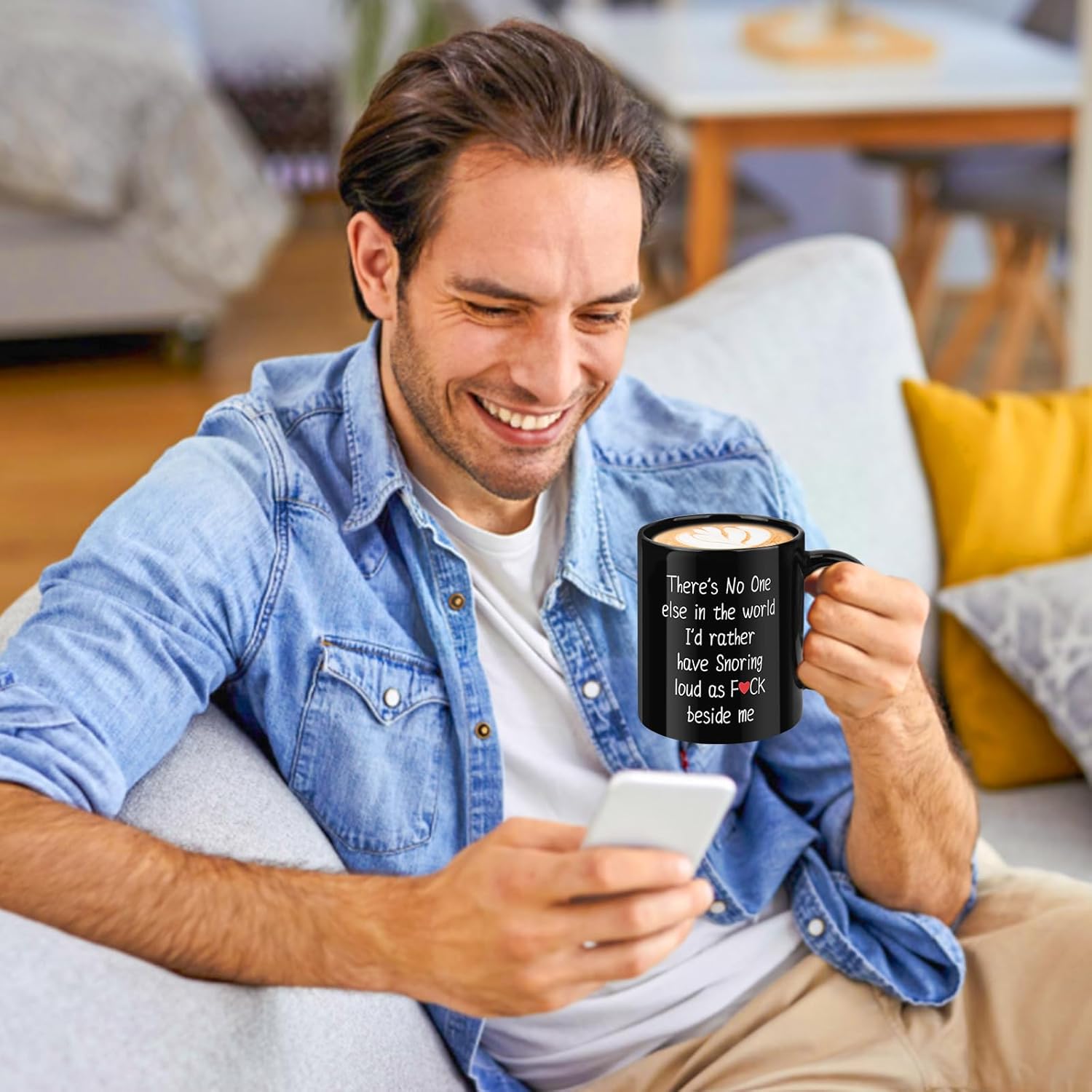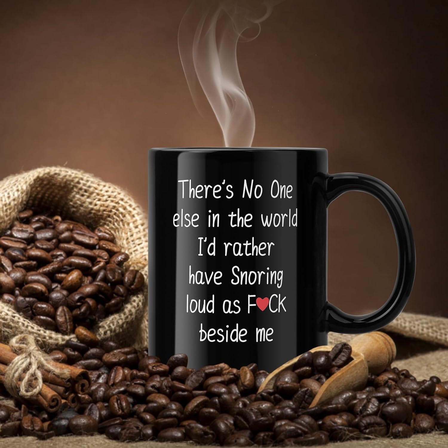 The mug features the phrase "There's No One else in the world I'd rather have Snoring loud as F*ck beside me".