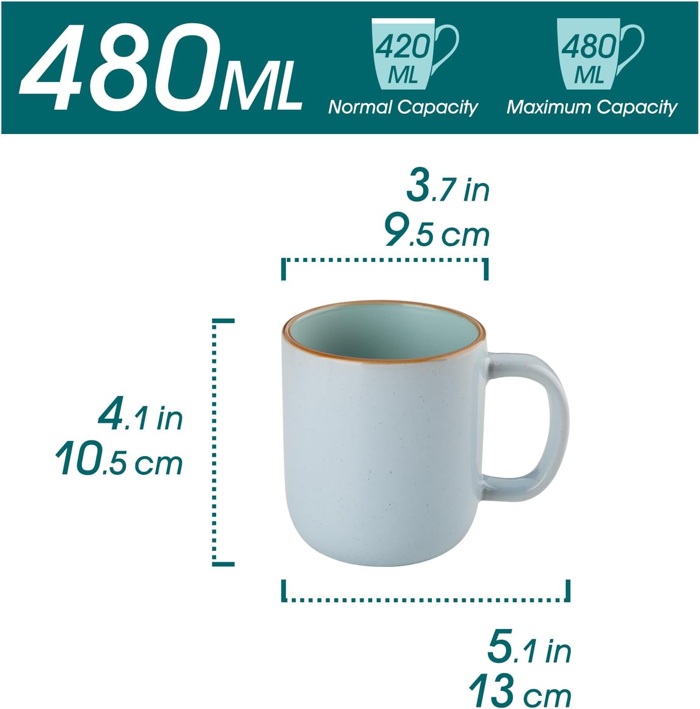 【Generous 480ml Capacity】With a substantial 480ml capacity per cup, these mugs are perfect for large lattes, generous servings of tea, or even beer. Their ideal size caters to your desire for a satisfying drink without frequent refills.