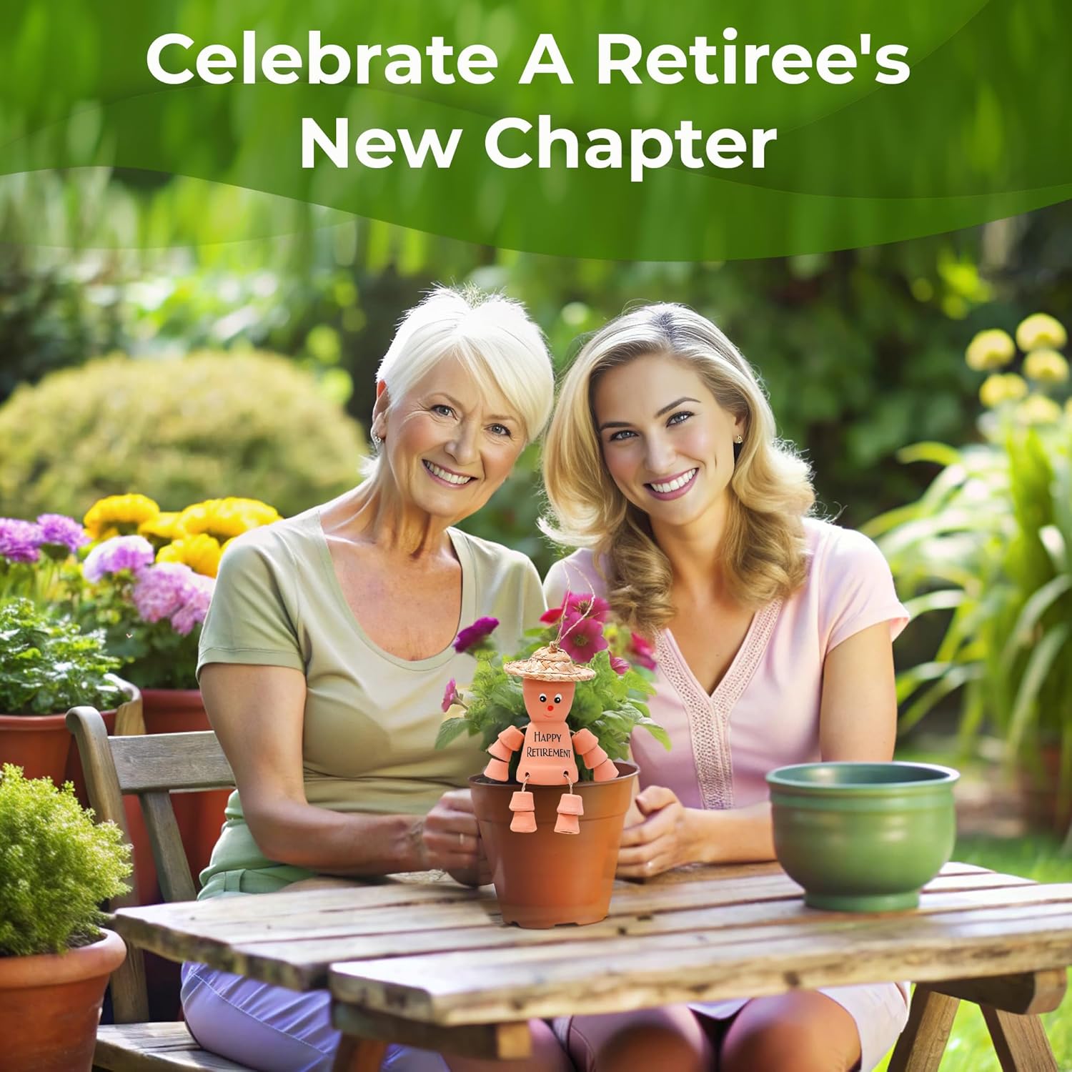 VELENTI Retirement Gifts for Women, Men – Happy Retirement Flower Pot Man – Lovely Retirement Gift for Family, Friends, Coworkers – Retirement Plant Pot Person – Cute Keepsake Gifts for Women, Men