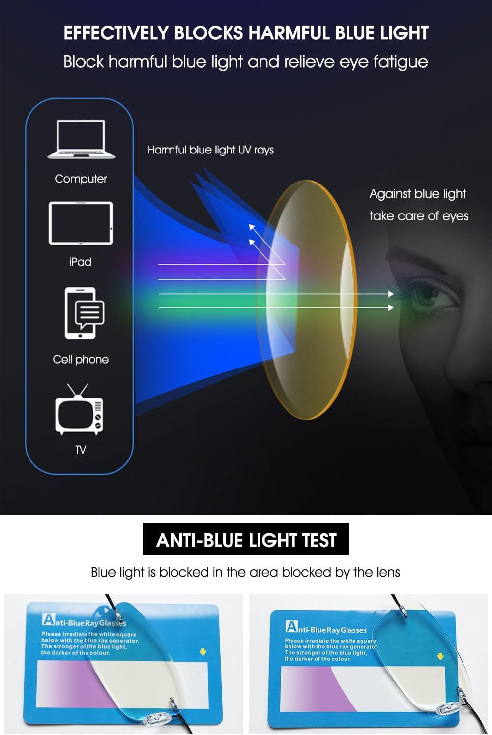 Blue light is divided into ‘harmful blue light’ and ‘useful blue light’ and our VEVESMUNDO glasses block 99% of harmful blue light. Protects against harmful blue rays all day long from the damaging effect of high energy visible blue light and UV400.