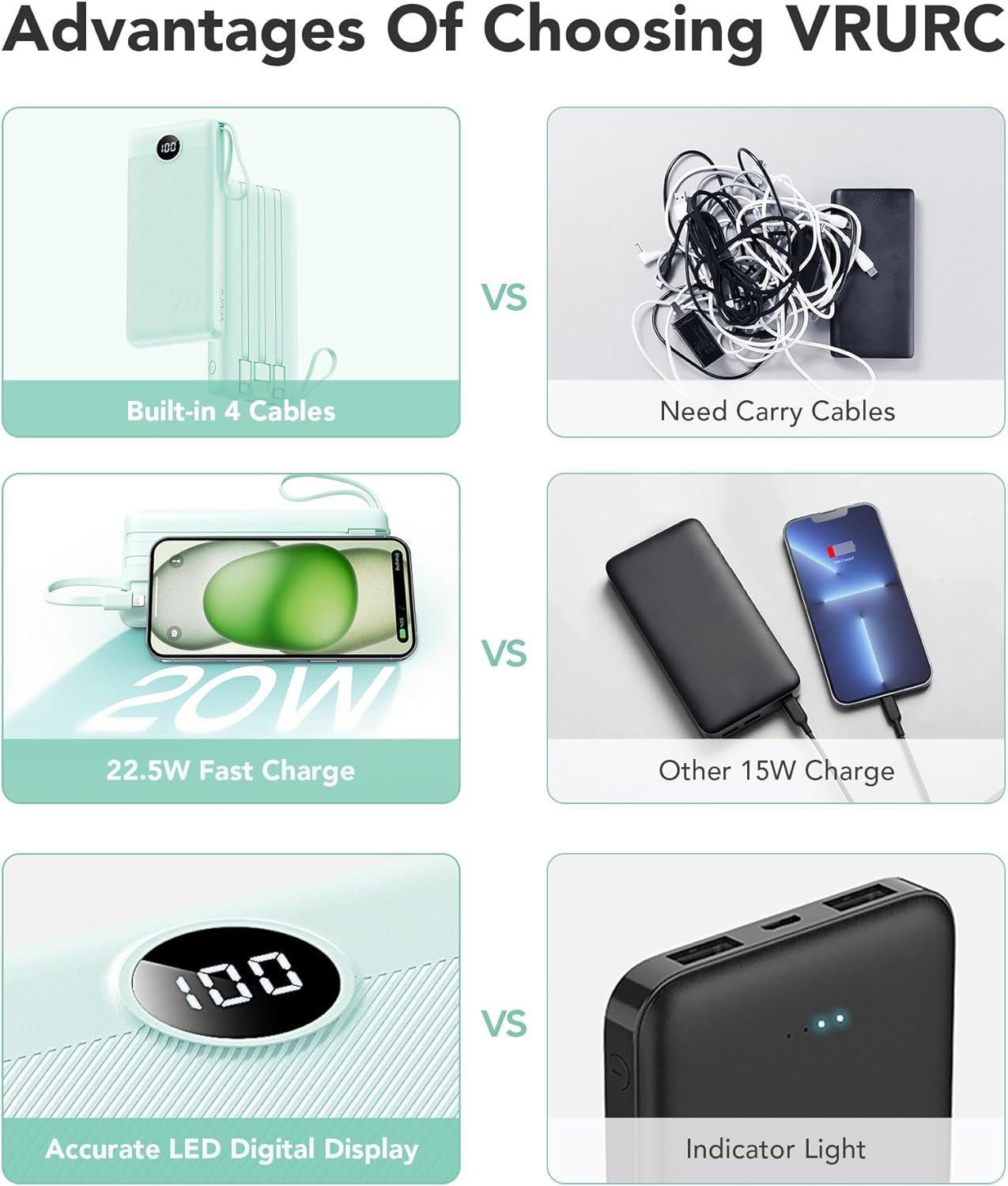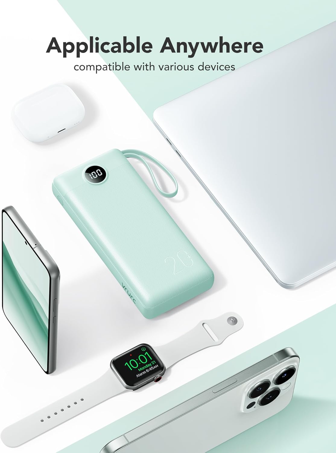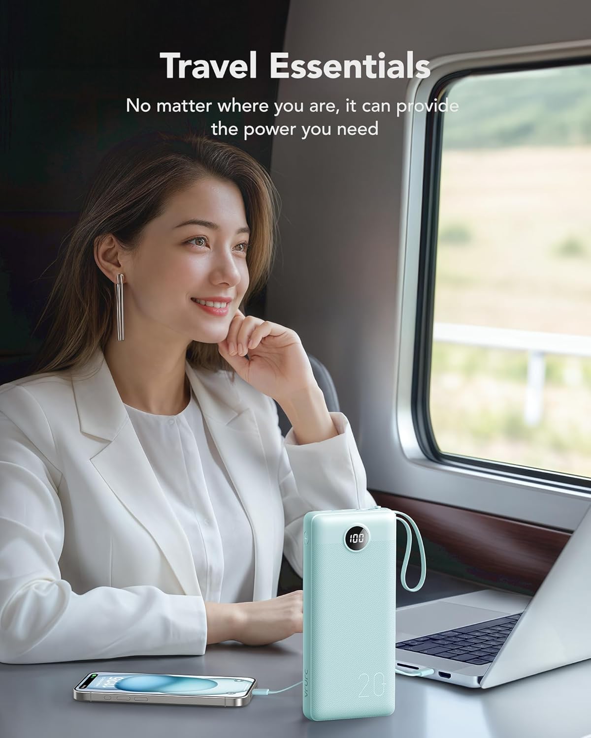 ⚡【Portable Charger with Built-in Cables Fast Charging】This 20000 mAh portable charger battery has a built-in Micro cable, Type C cable, and another cable for iPhone, total of three durable output cables. It’s convenient to charge for all smart devices directly. Also, the USB C portable charger has a built-in USB cable for recharge the power bank itself directly. Wherever you go, don’t need to carry any extra cords.