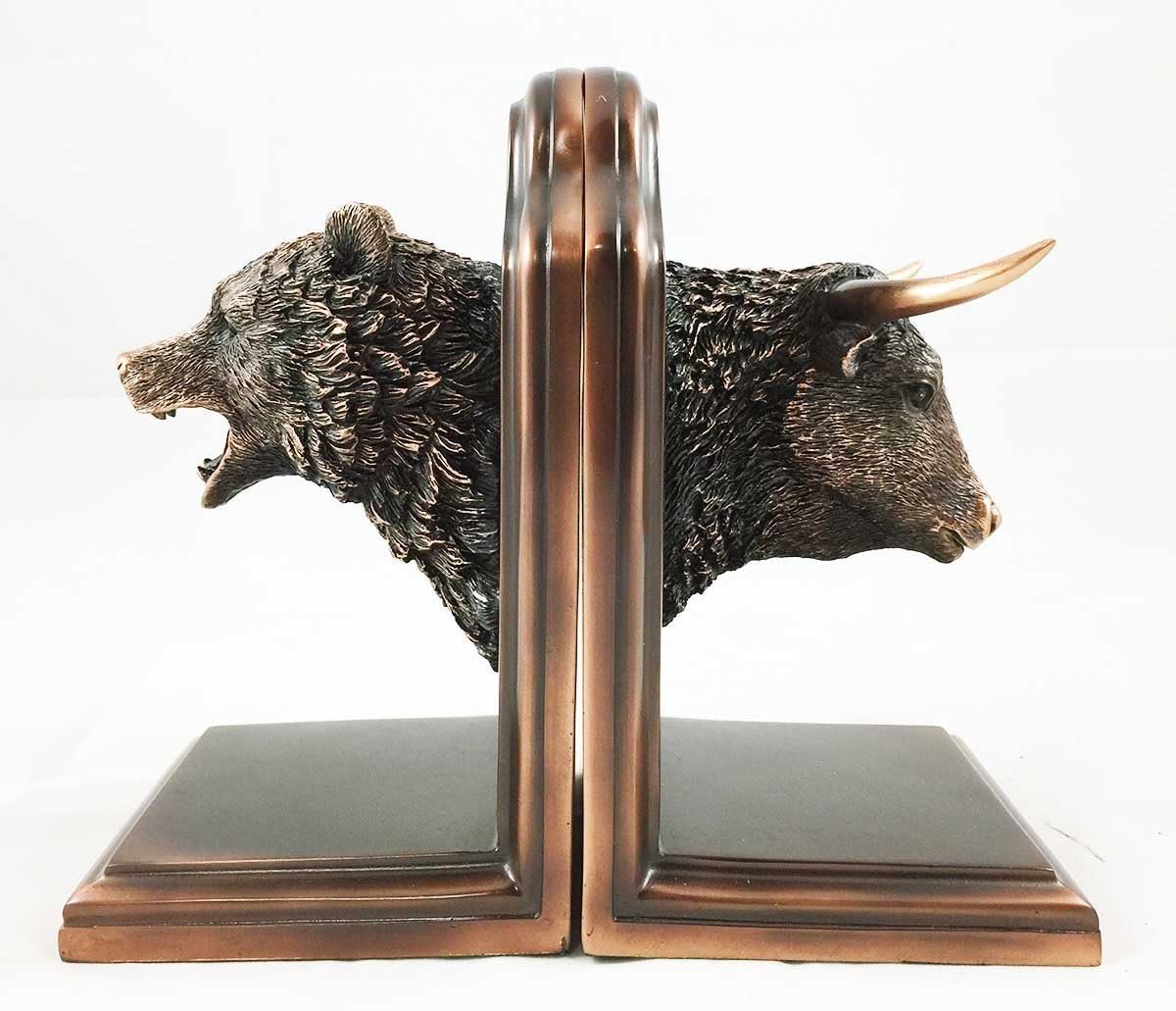 Wallstreet Stock Market Bull and Bear Head Bookends Bronze Electroplated Figurine Investors Gifts Money Managers