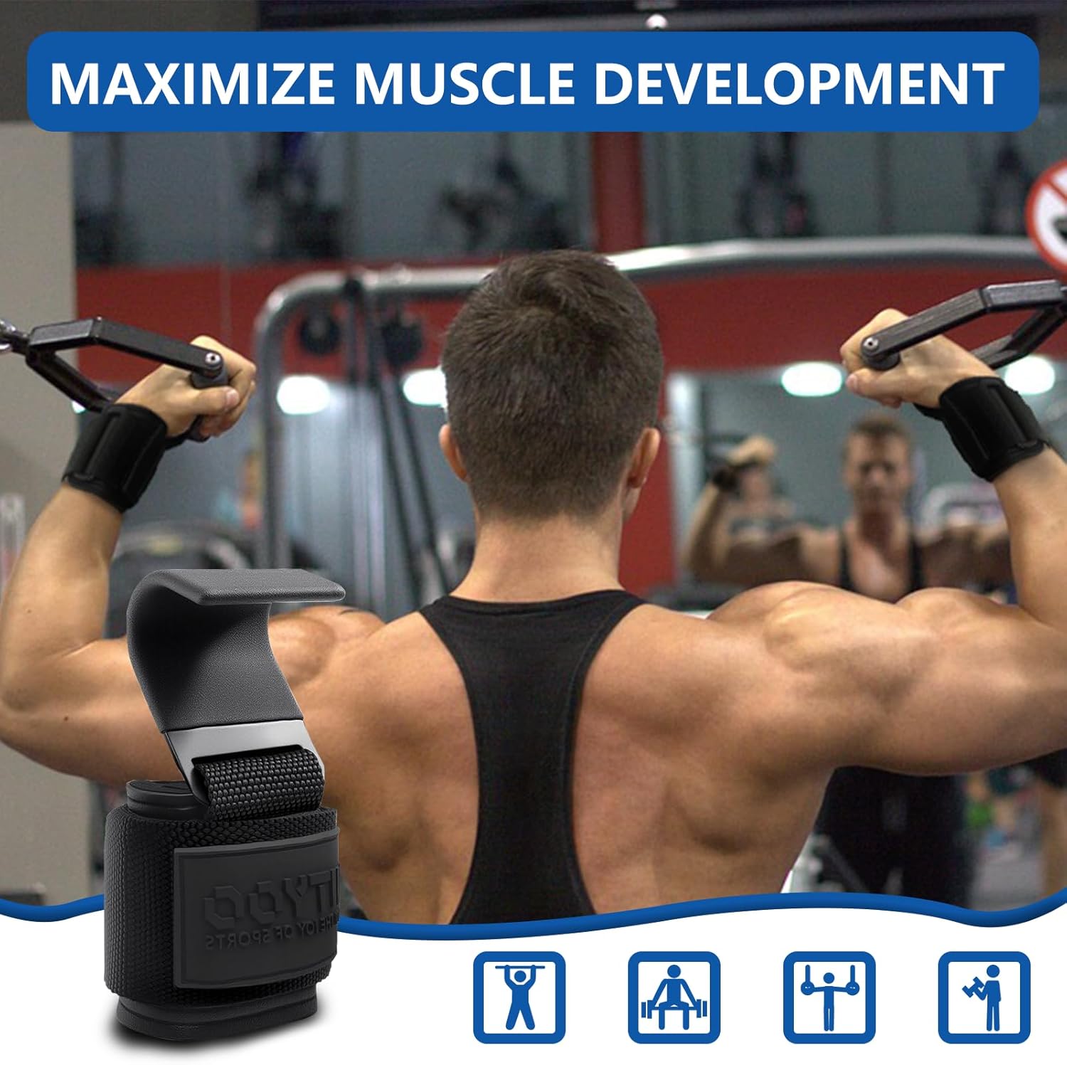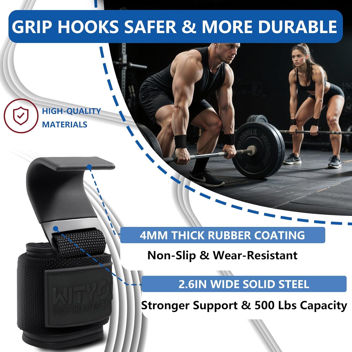 TOP DESIGN — Weightlifting wrist hooks are covered with a high-quality rubber coating, providing non-slip and wear-resistant grip. The hook design fits the palm better, avoiding calluses and ensuring a stable grip to enhance support during workouts.
