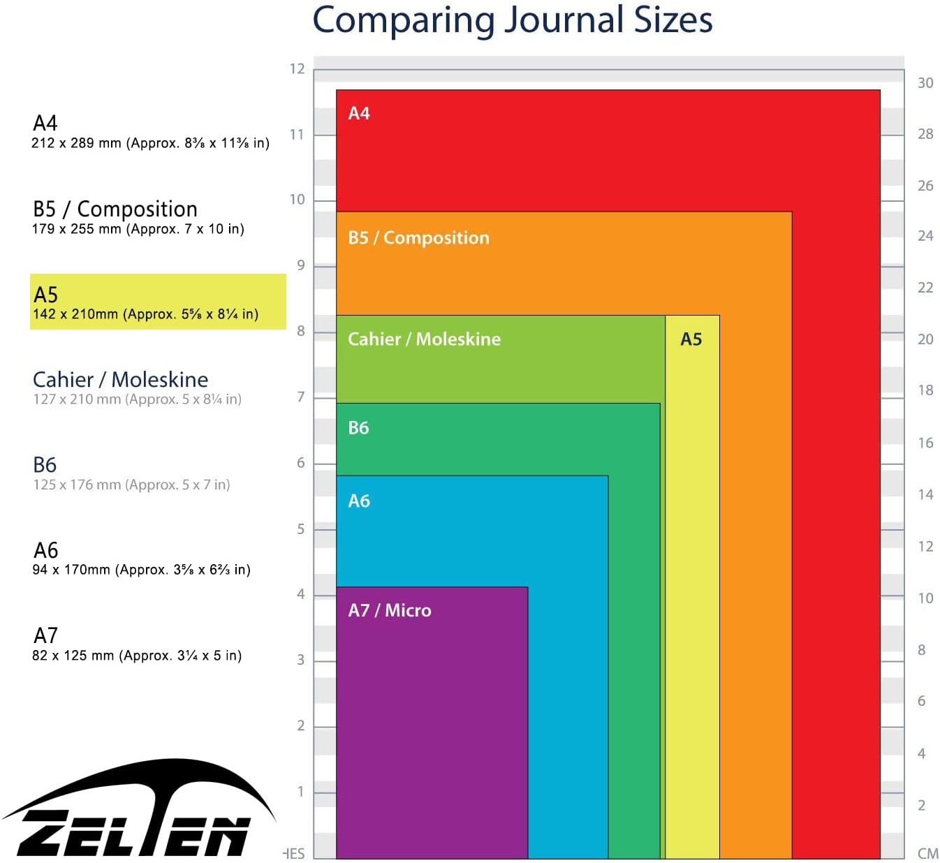 The Zelten loose leaf paper refills are A5 size, measuring 142x210mm (5.6"x8.2").