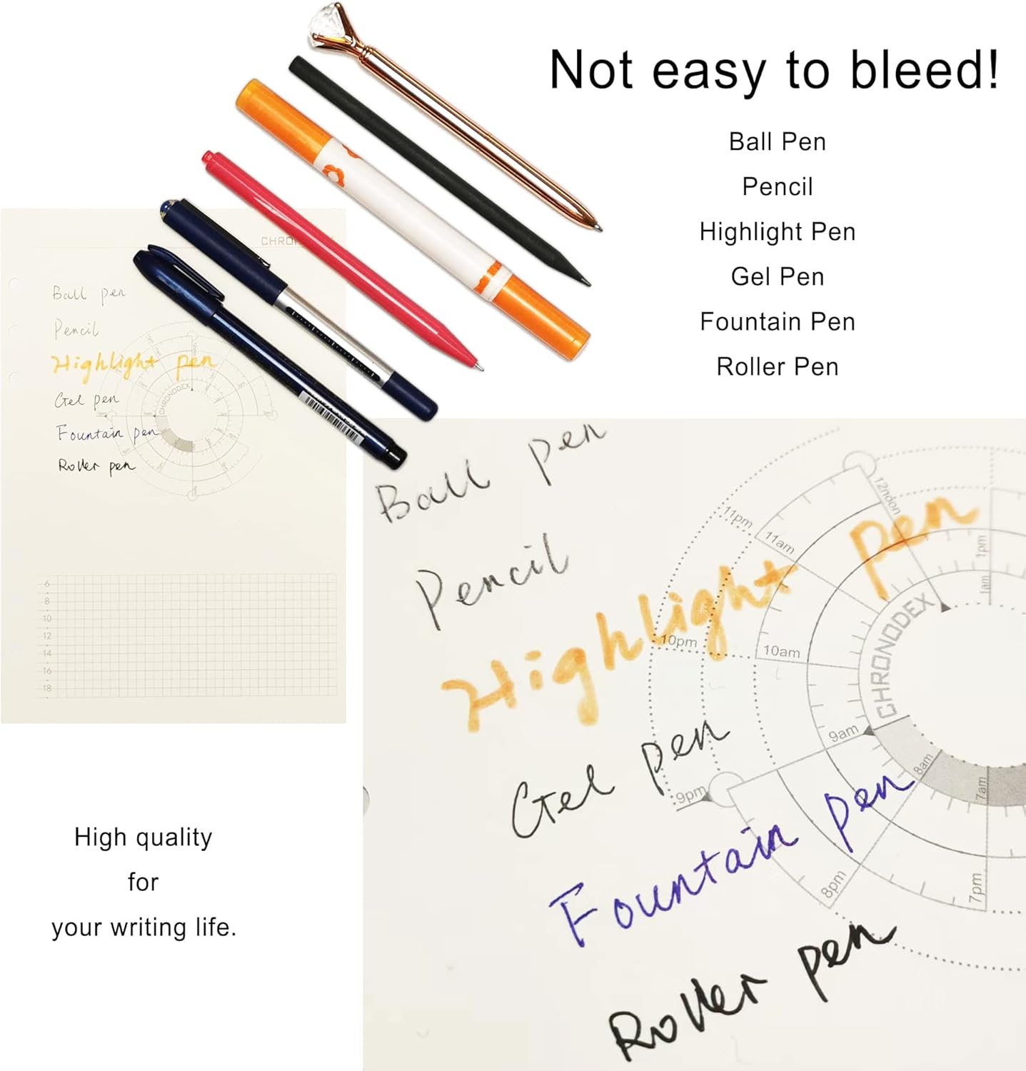 High quality refill paper, 100gsm thick paper, not easy to bleed through, fit for most ink (no smearing), gel pen, fountain pen, ballpoint pen, watercolor pen, pencil, and so on.